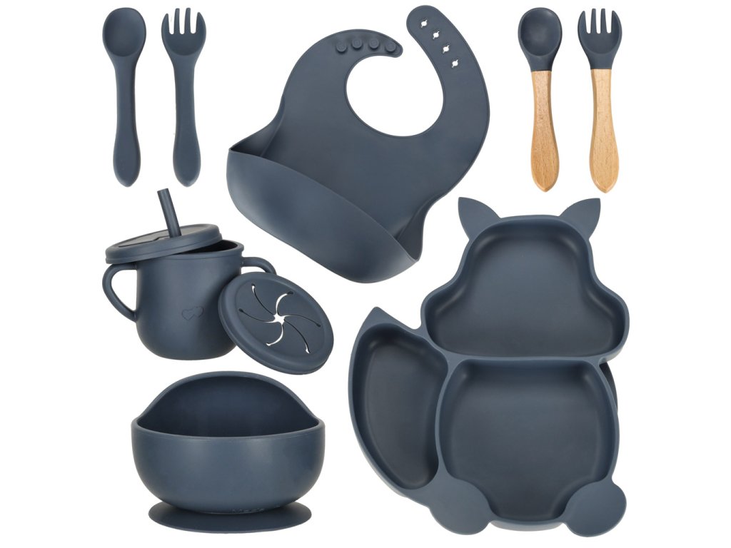 DĚTSKÉ SILIKONOVÉ NÁDOBÍ VEVERKA SADA 9 KUSŮ TMAVĚ MODRÁ