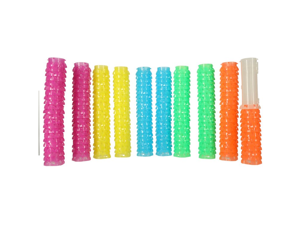 Kostky jsou v pěti barvách - žluté, růžové, zelené, modré a oranžové. Díky tomu je možné vytvořit zajímavou a mimořádně barevnou dráhu na hraní!
