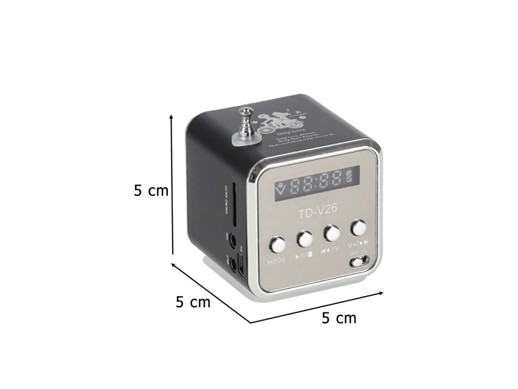 Rádio se sklopenou anténou (H/W/D): 5 cm x 5 cm x 5 cm