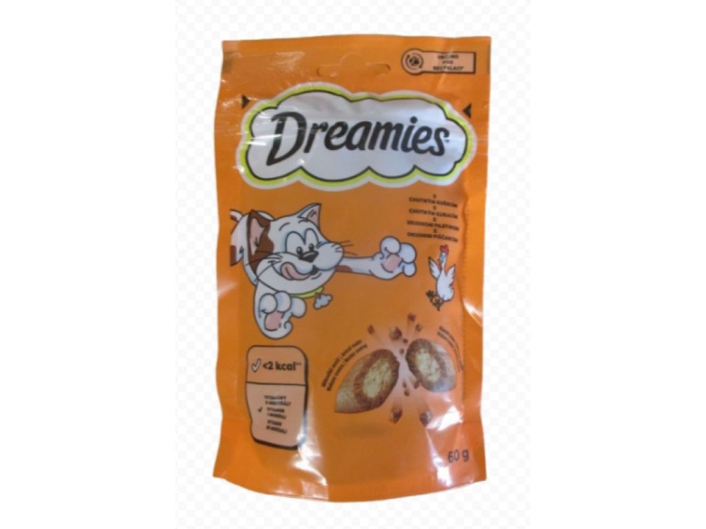 Doporučené dávkování: Dospělé kočce dejte nejvýše 20 kusů denně. Koťatům dejte nejvíce 6 kusů denně. Snižte odpovídajícím způsobem množství hlavního krmiva. Uchovávejte v chladu a suchu. Po otevření udržujte těsně uzavřené a spotřebujte do 4 týdnů. Čerstvá pitná voda musí být vždy k dispozici. Složení: cereálie, maso a výrobky živočišného původu (včetně 4% kuřecích), oleje a tuky, výrobky rostlinného původu, rostlinné bílkovinné extrakty, minerální látky.Analytické složky: protein 31%, obsah tuku 21%, obsah anorganických látek 10%, hrubá vláknina 1,7%, energie 416 kcal/100g.Doplňkové parametry