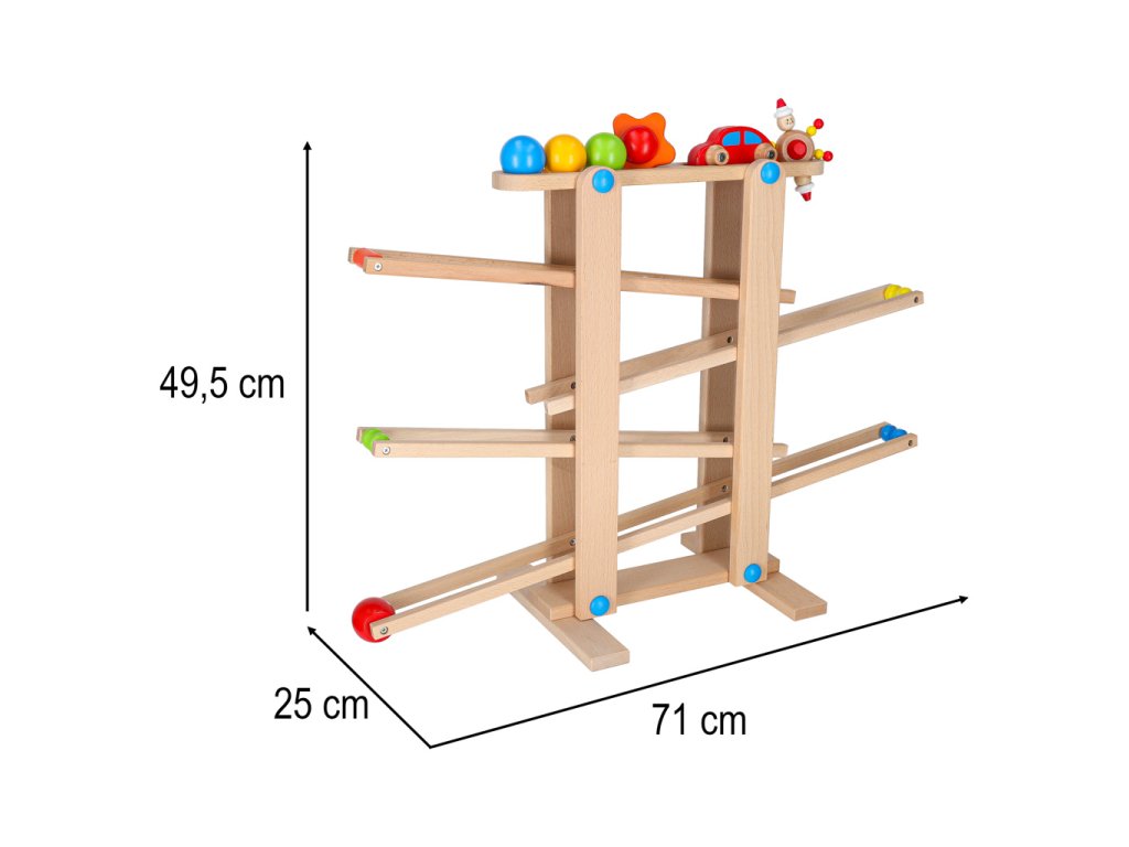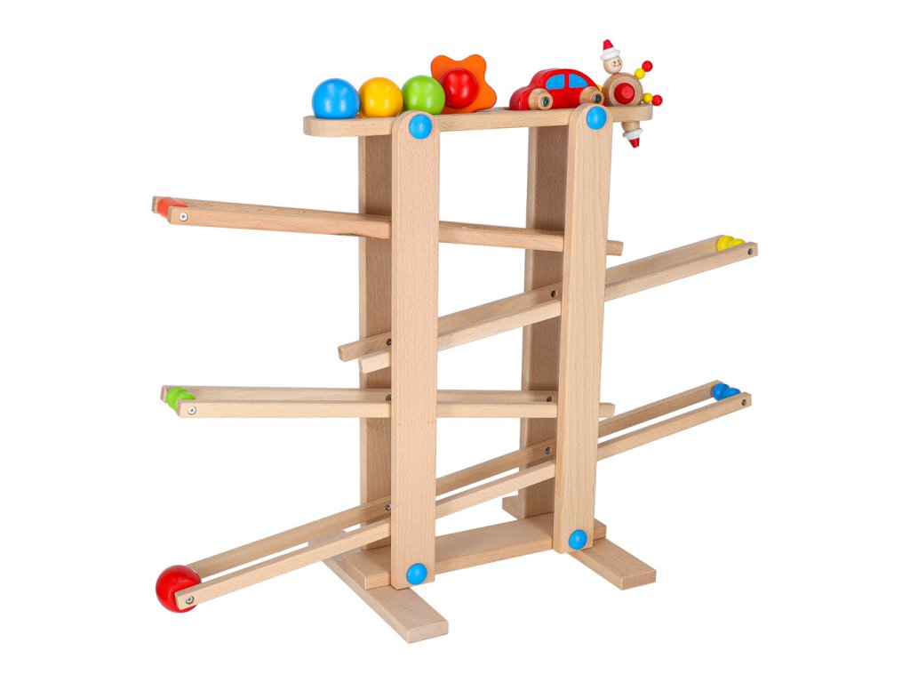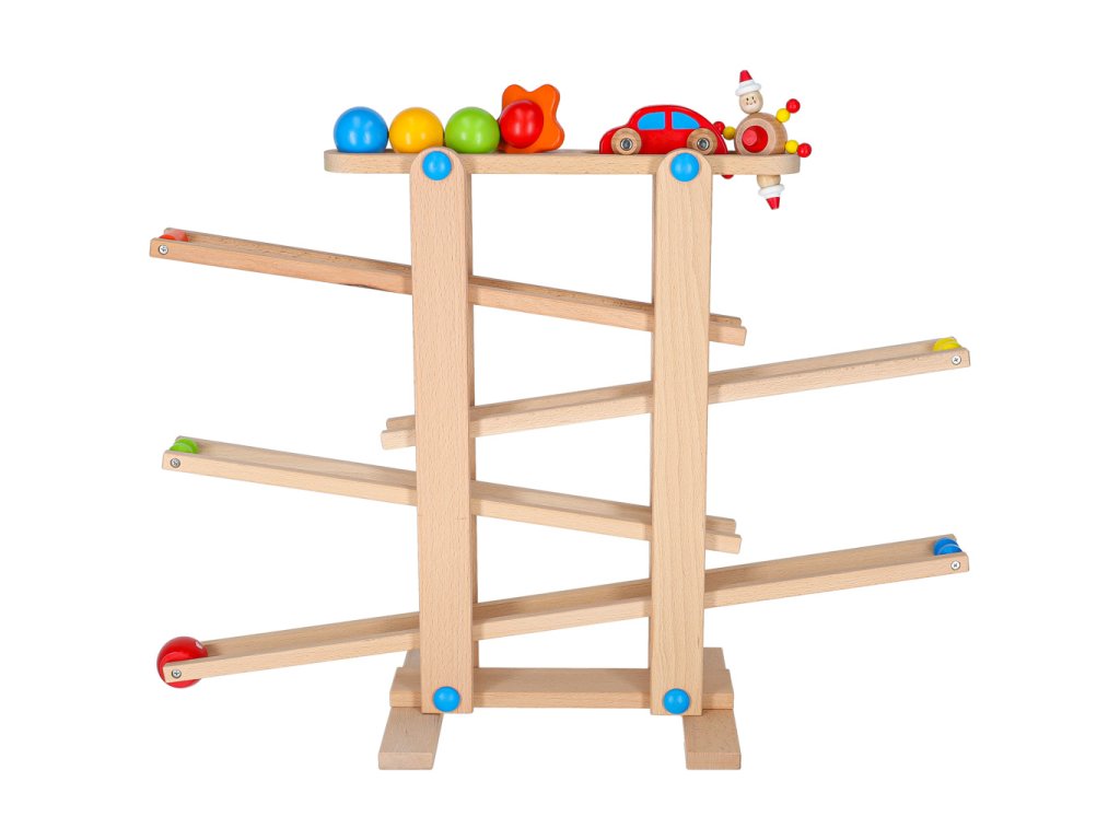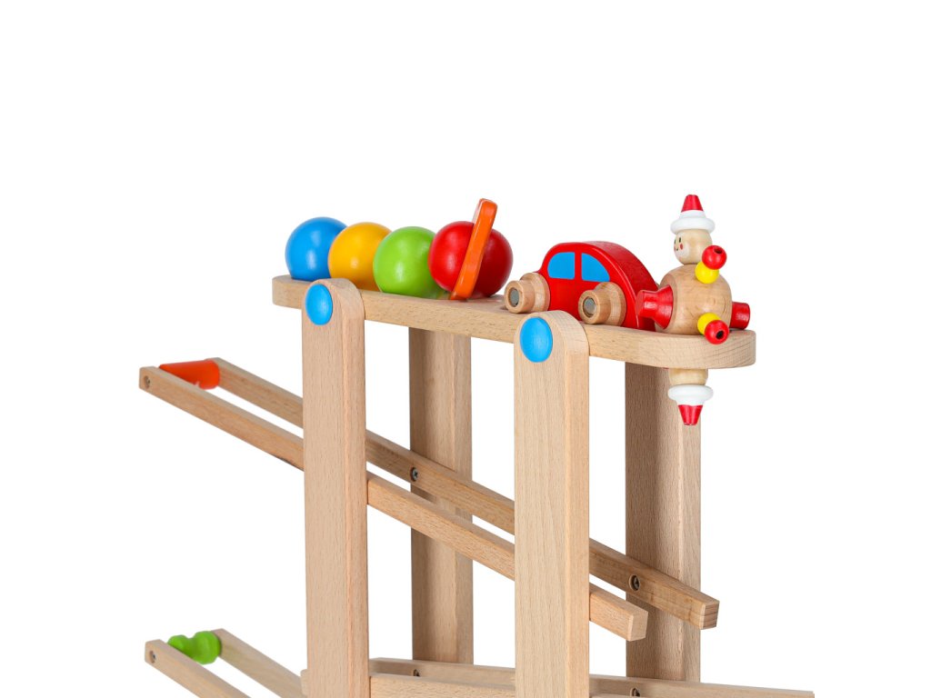 Tato fantastická dřevěná dráha s kuličkami a autíčky potěší každého malého objevitele.