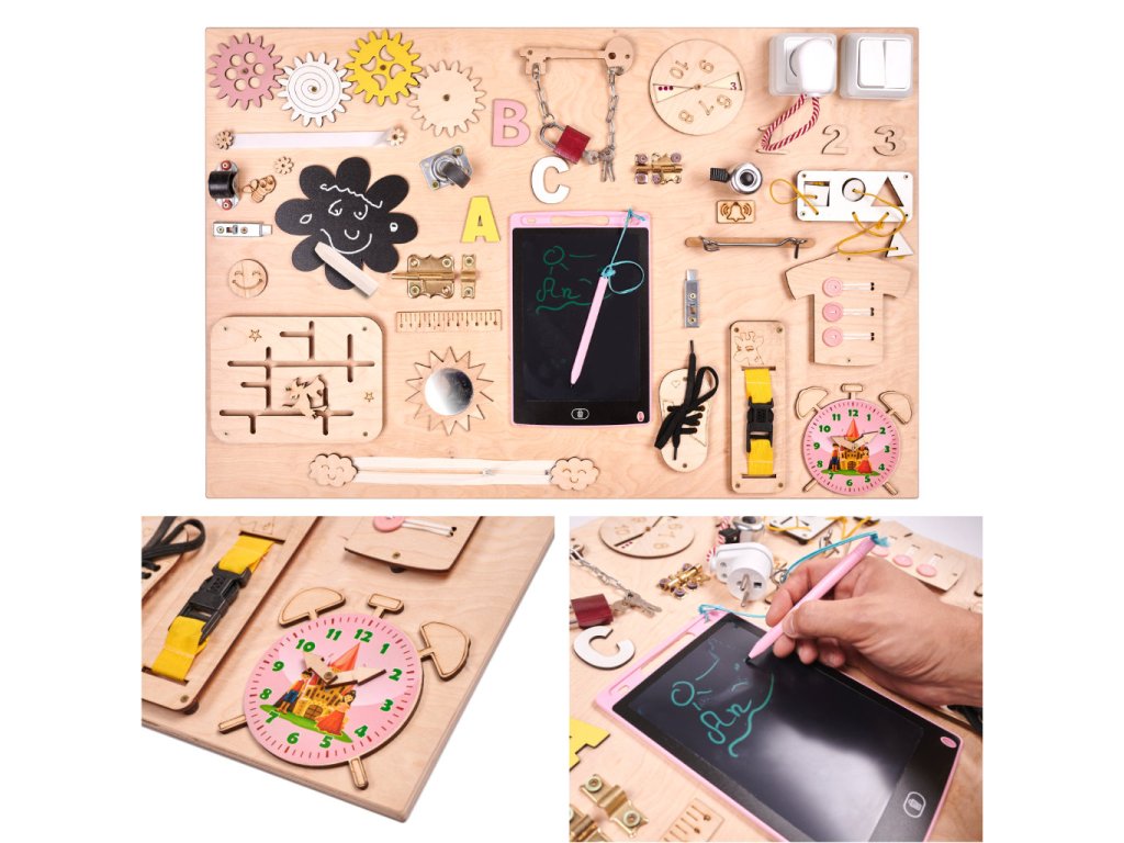 Navíc hraní s fidget boardemtaké procvičuje soustředění, koordinaci očí a rukou, podněcuje představivost a učí myslet na příčiny a následky.. Závěr je jednoduchý - tato hračka je prospěšná!