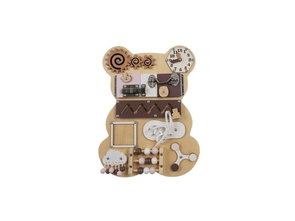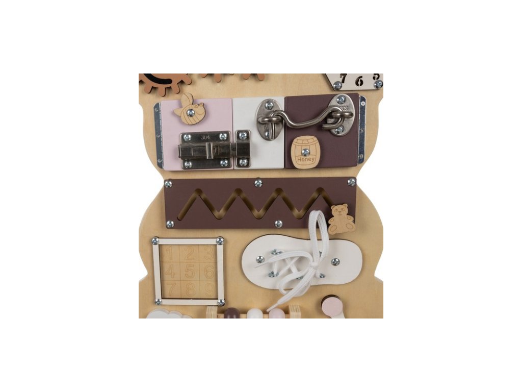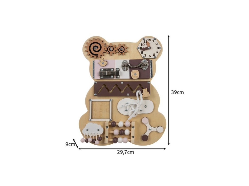 Dřevěná manipulační senzorická deska - medvídek montessori 14 v1