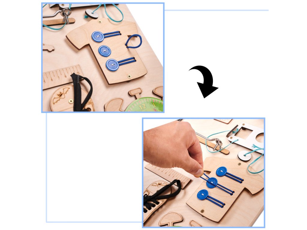 Přesouvání, posouvání, šněrování, přepínání, otáčení atd. je fantastický způsob, jak trénovat manuální dovednosti, které se v budoucnu jistě budou nesmírně hodit, například při učení psaní.