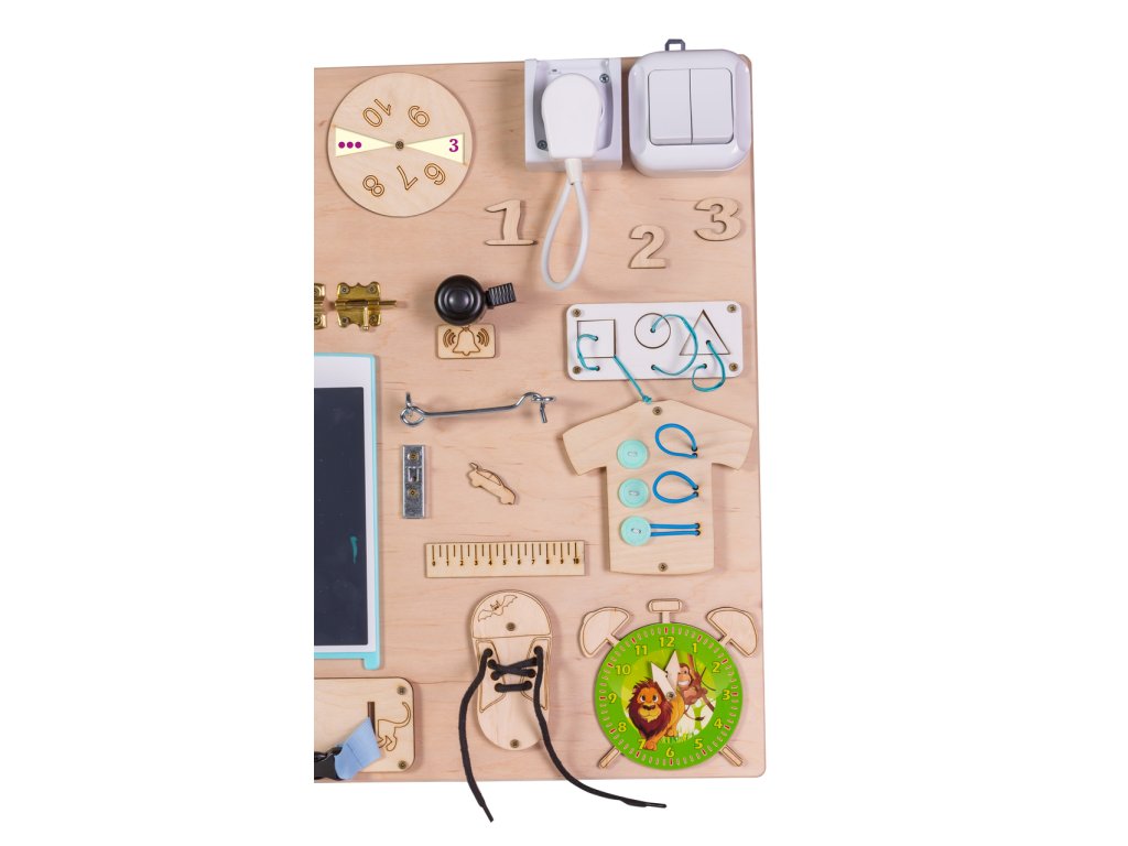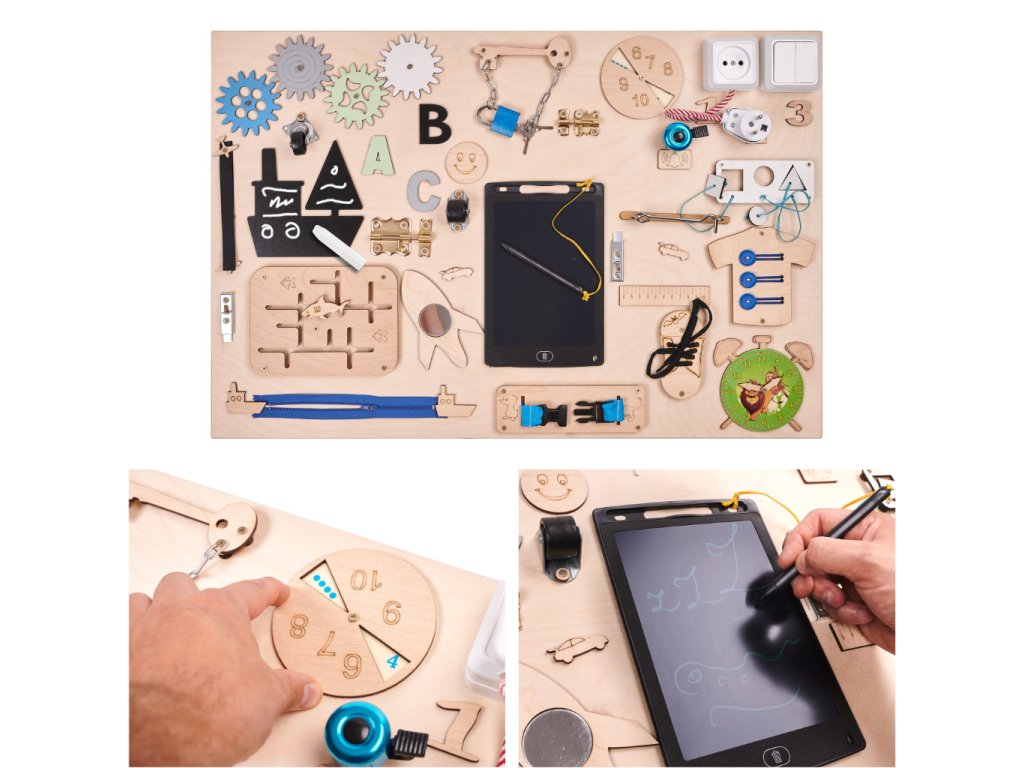 Ale co přesně je manipulační deska? Je to výrobek, který má různé prvky, většinou předměty denní potřeby - včetně zásuvky se zástrčkou, vypínače světla, zvonku na kolo a mnoha dalších!