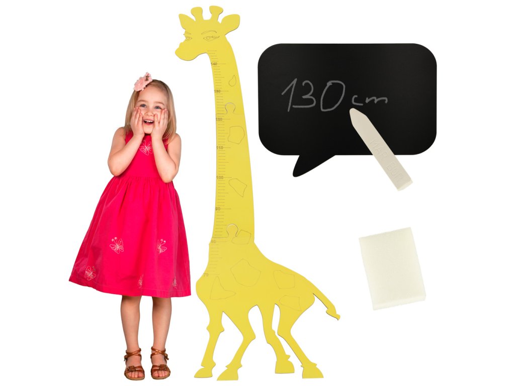 Dřevěná žirafa růstová míra 125 cm žlutá + křídová tabule 32 x 44 cm