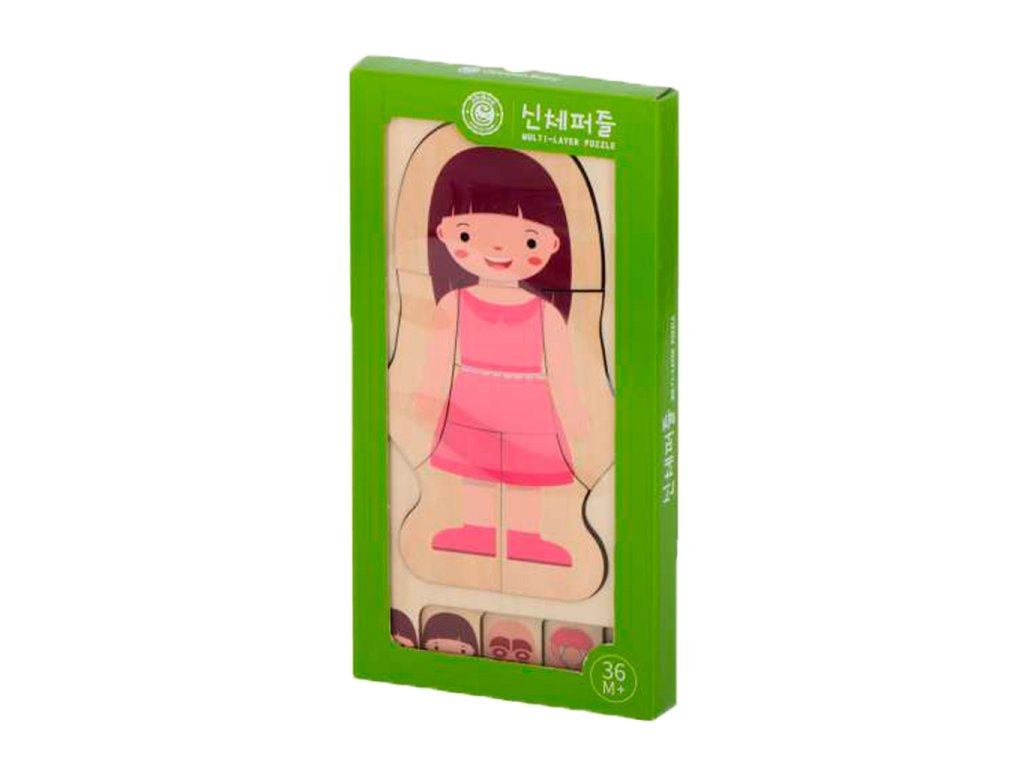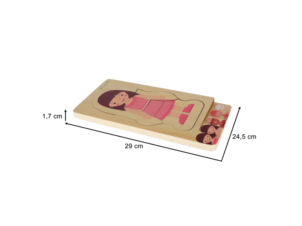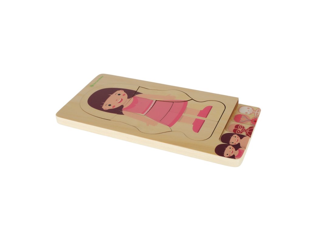 Dřevěné vrstvené puzzle tělesné stavby montessori dívka