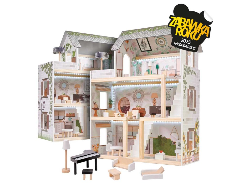 Dřevěný domeček pro panenky LULILO FLORO boho LED