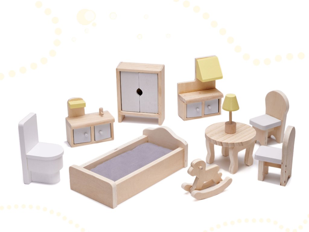Jak se na skutečný dům sluší, součástí balení je i krásný dřevěný nábytek, který skvěle doplní každou místnost.