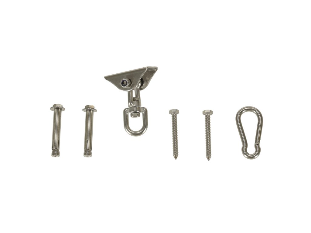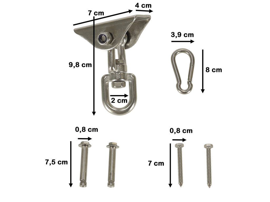 Sada obsahuje díly, jako je otočný stropní hák, karabina, lano a čtyři šrouby - jinými slovy vše, co budete potřebovat!