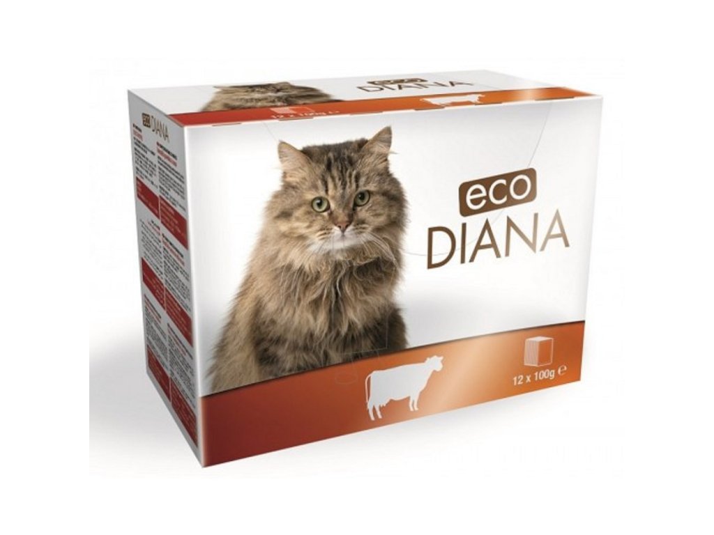 Eco Diana 12 x 100g hovězí kousky v omáčce kapsička cat