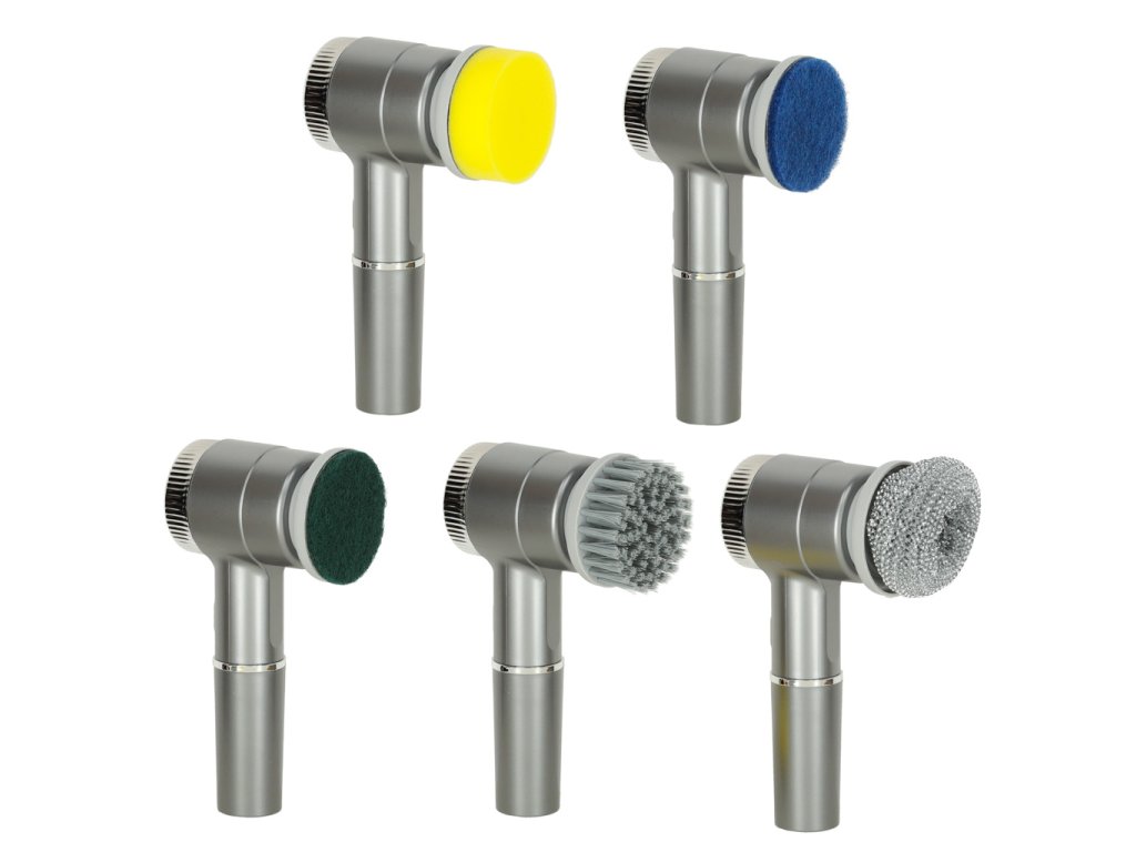Kartáč má pět vyměnitelných nástavců, které umožňují precizní čištění různých povrchů - od jemného leštění až po intenzivní drhnutí silně znečištěných ploch. Díky nacvakávacímu mechanismu je výměna nástavců rychlá a intuitivní.