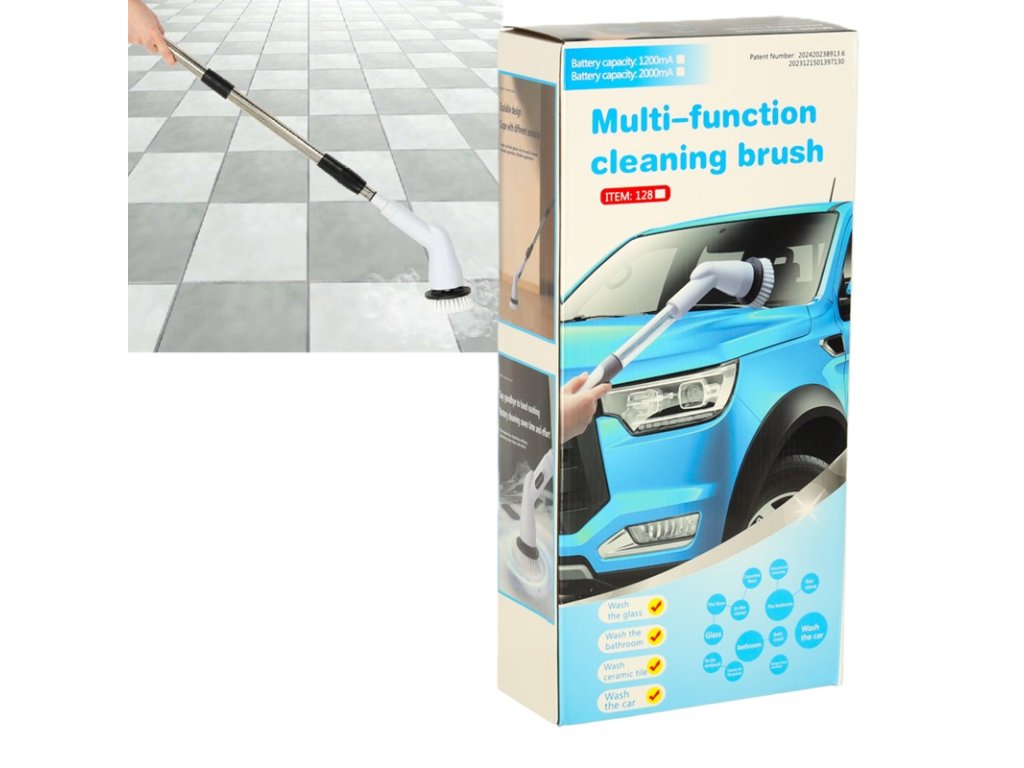 Elektrický kartáč s pěti výměnnými nástavci je nepostradatelným pomocníkem pro rychlé a efektivní čištění různých povrchů. Díky účinnému 2,5W motoru a vestavěné baterii zajišťuje pohodlnou práci. Velký, přehledný displej umožňuje sledovat úroveň nabití baterie.