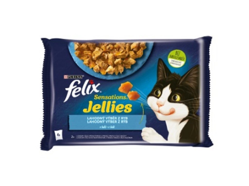 Krmivo obsahuje křehké masité plátky ve šťavnatém želé, které nejen skvěle vypadají, ale hlavně chutnají. V tomto multipacku najdete celkem 4 kapsičky ve dvou příchutích - 2x s lososem v želé s příchutí krevet, 2x s treskou tmavou v želé s rajčaty.Složení - losos v želé s příchutí krevet: maso a výrobky živočišného původu (12%), bílkovinné extrakty rostlinného původu, ryby a vedlejší výrobky z ryb (0,4% losos), měkkýši a korýši (krevety 1%), minerální látky, cukry.Složení - treska tmavá v želé s rajčaty: maso a výrobky živočišného původu (12%), bílkovinné extrakty rostlinného původu, ryby a vedlejší výrobky z ryb (0,4% treska tmavá), zelenina (sušené rajčata 0,9%, odpovídá 11% rajčat v želé), minerální látky, cukry. Vitamíny: Vitamin A: 655 m.j./kg, Vitamin D: 100 m.j./kg, Vitamin E (alfa-tokoferol): 15 mg/kg, Obsah vitaminů je zaručen do data minimální trvanlivosti.Deklarované jakostní znaky: vlhkost 82,0%, proteiny 11,5 %, tuky a oleje 2,5%, popel 2.5 %, hrubá vláknina 0,05 %, kyselina linoleová (Omega 6m.k.) 0,4%. Doporučená denní dávka 3-4ks kapsičky Felix 100g pro 1 kočku (4kg)Kočkám podáváme krmivo ohřáté na pokojovou teplotu.Čerstvá voda by měla být po celou dobu k dispozici. Dávky krmiva lze upravit dle hmotnosti kočky. Po otevření obalu skladujte v chladničce a spotřebujte do 24hodin.Doplňkové parametry