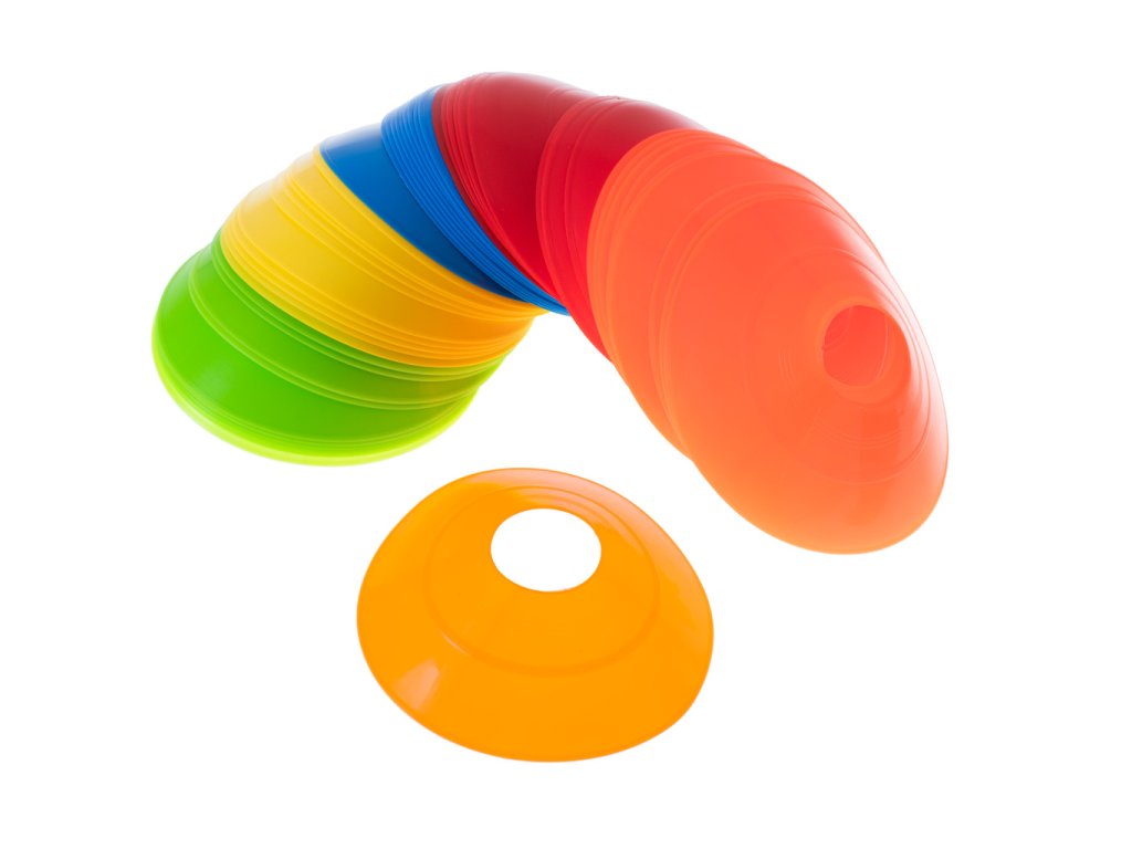 Sada až 50 kuželů v 5 barvách zpestří všechny hry a pohybové hrátky, ale také se skvěle hodí pro jakýkoli sportovní trénink.