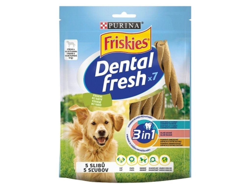 Tyčinky obsahují jedinečnou směs aktivních látek, které spolu s tvarem a speciálně vyvinutou strukturou dělají z každého žvýknutí efektivní prostředek proti ústním a zubním problémům - účinnost je věděcky ověřena klinickými testy. Jsou určeny pro psy středních a velkých plemen.Složení: obiloviny, bílkovinné extrakty rostlinného původu, masa a výrobky živočišného původu, cukry, oleje a tuky, minerální látky, mléko a mléčné výrobky.Deklarované jakostní znaky: proteiny 9,0%, tuk 3,0%, popel 12,0%, vláknina 2,0%, vlhkost 16,0%.Doplňkové parametry