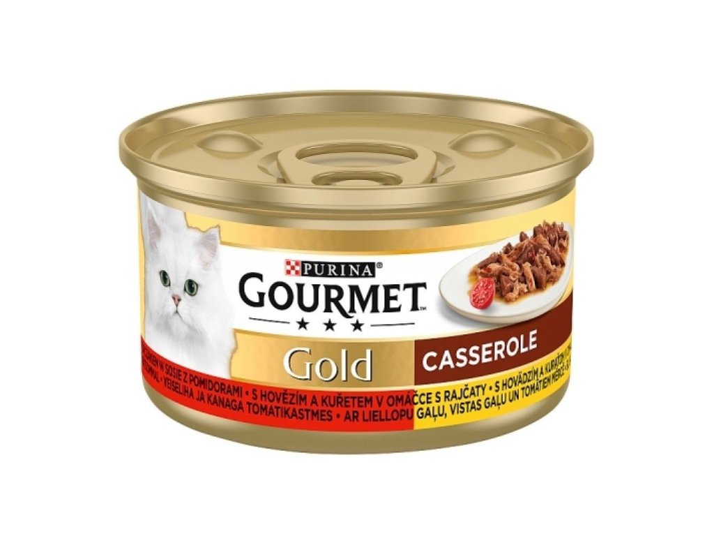 Gourmet 85g gold hovězí+kuře v rajč.omáčce/12ks