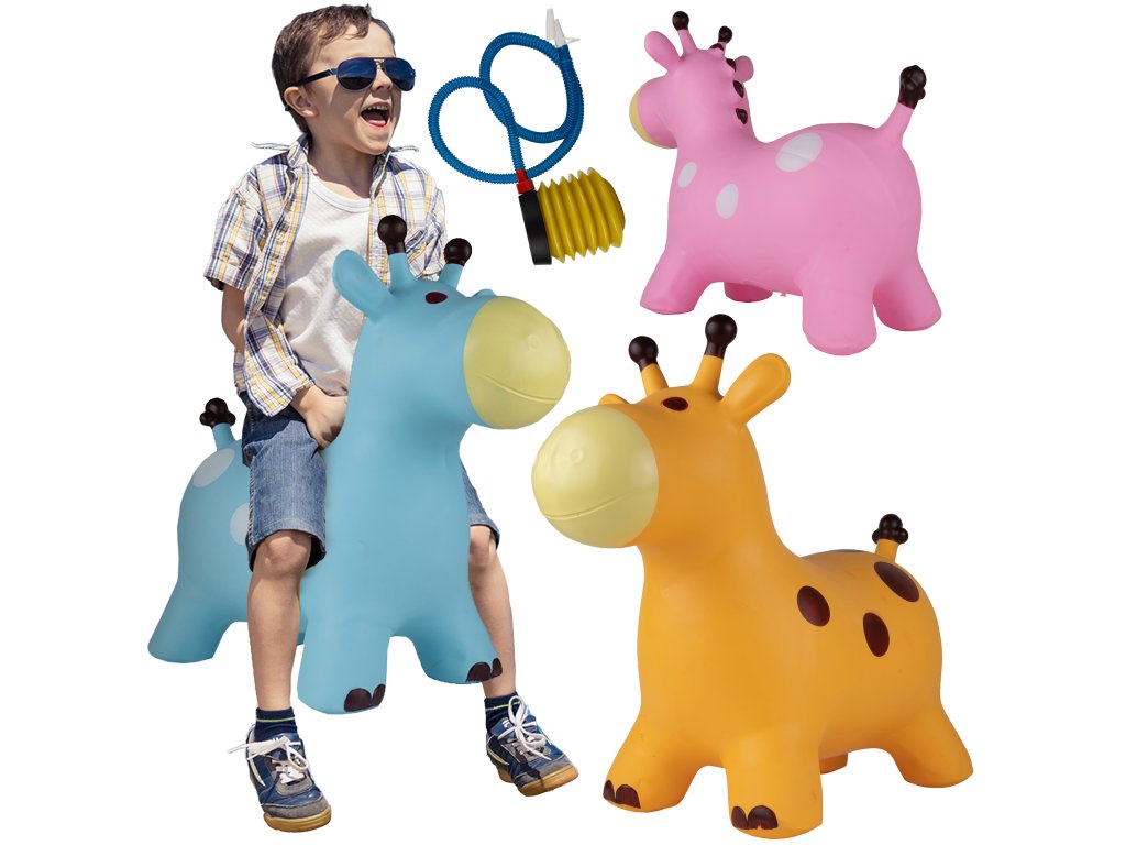 Gumový skákací koník Žirafka s pumpičkou