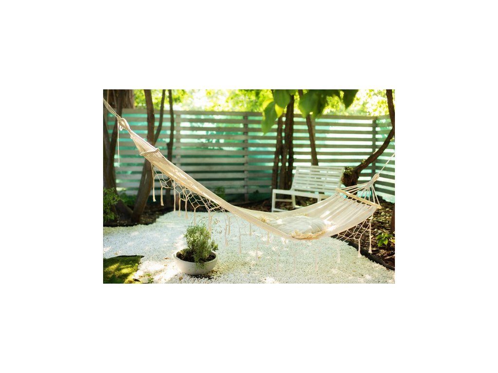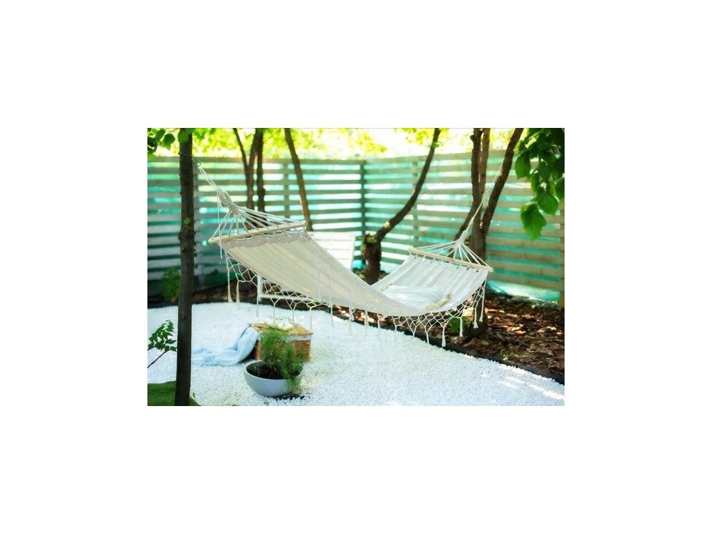 Toto je dokonalé spojení estetiky a funkčnosti. Houpací síť s třásněmi nejen skvěle vypadá, ale také přináší pocit blaženého uvolnění – na zahradě, terase nebo ve vašem domácím azylu.