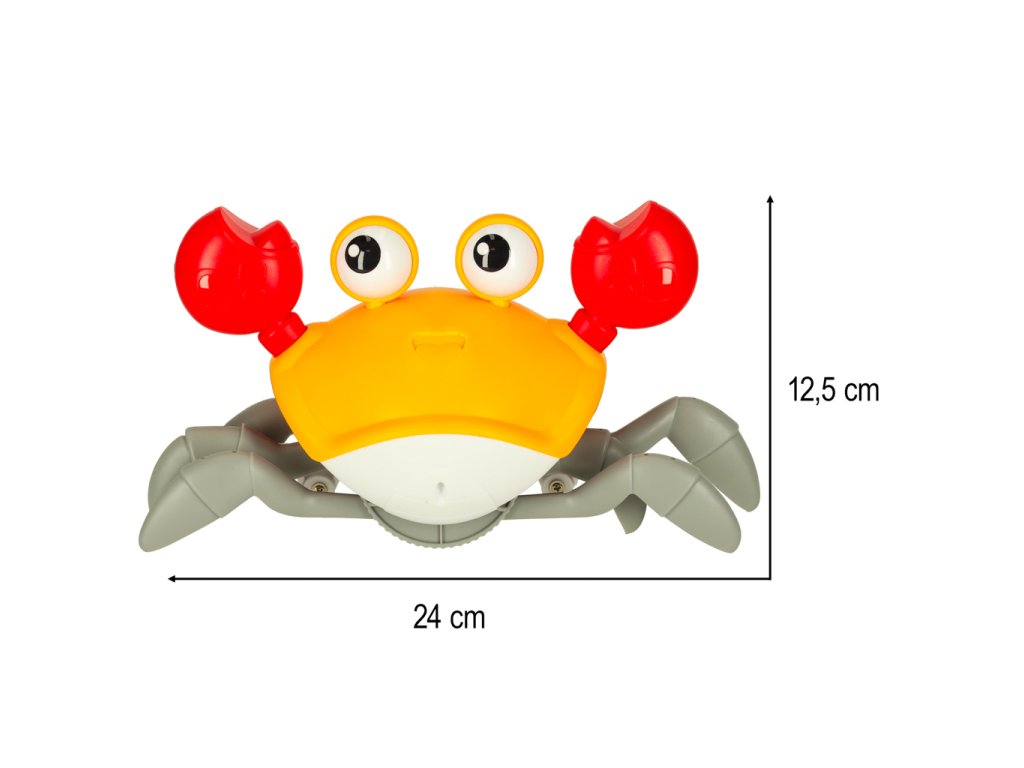 Kromě plazení hraje červený krab také hudbu - během hry tak bude stimulován i sluch dítěte.