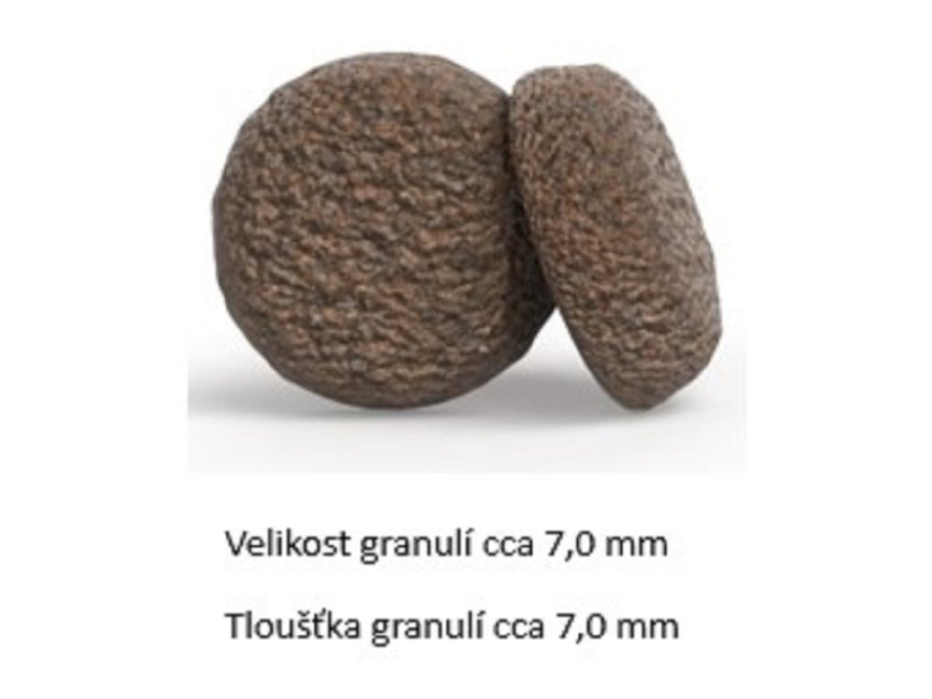 Nová receptura, která je speciálně přispůsobena potřebám psů malých plemen, kteří dosáhli určitého věku. Suché krmivo pro starší psy je dodáváno s bezlepkovou recepturou, která je optimálně přizpůsobena potřebám seniorů. Cenné antioxidanty jako vitamín E, vitamín C a Taurin pomáhají působit proti stárnutí buněk, zatímco L-karnitin pomáhá předcházet ztrátě svalové hmoty související s věkem. Snížený obsah fosforu může také ulevit ledvinám. Lososový olej poskytuje cenné Omega-3 mastné kyseliny, jako jsou DHA a EPA. Ty hrají důležitou roli v těle vašeho psa díky svému protizánětlivému účinku, včetně imunitního systému, kůže a srdce. Mírný obsah energie a minerálů je dokonale přizpůsoben aktivitě starších čtyřnohých přátel a může navíc ulevit orgánům ve stáří. Díky lahodnému kuřecímu masu a rýži chutná. Bezlepkové krmivo ve formě malých kroket. Složení: sušené drůbeží bílkoviny 25,0% (z toho 40%), rýže 25%, celozrnná kukuřice, řepné řízky, drůbeží tuk, hydrolyzovaný drůbeží protein, minerální látky, lososový olej 0,5%, sušený mletý kořen čekanky (přírodní zdroj inulinu), sušený protein z novozélandské slávky zelenoústé (Perna canalicu). Analytické složky: bílkoviny 24,0%, obsah tuku 12,0%, hrubá vláknina 2,2%, hrubý popel 6,0%, vápník 0,95%, fosfor 0,70%, sodík 0,50%, hořčík 0,08%, Taurin 1 000mg. Nutriční doplňkové látky na kg: Vitamín A 24000IU, Vitamín D3 1 800IU, Vitamín E 22mg, Vitamín C (jako askorbylmonofosfát, solná sůl vápená) 200g, Vitamín B1 15mg, Vitamín B2 20mg, Vitamín B6 20mg, Vitamín B12 100mcg, D-pantothenát vápenatý 50mg, niacinamid 90mg, kyselina listová 5mg, Biotin 1 000mcg, L-karnitin 300mg železo ( síran železnatý monohydrát) 90mg, Zinek ( glycin chelát zinku hydrát (pevný) 100mg, Mangan ( oxid manganatý) 7,00mg, Měď (měďnatý glycin chelátový hydrát (pevný) 10,0mg, Jód ( jodičnan vápenatý, bezvodý) 1,15mg, Selen (seleničitan sodný) 10mg. Metabolizovatelná energie na kg 3 703 kcal Metabolizovatelná energie na kg 15,5MJDoplňkové parametry