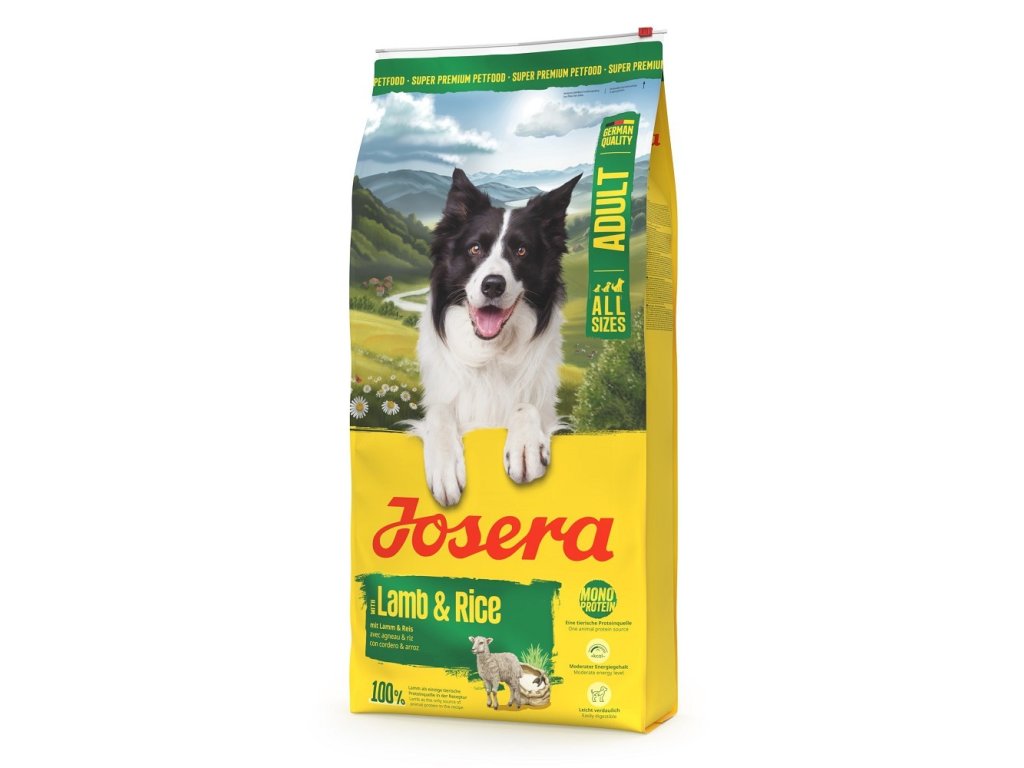 S krmivem Josera jehněčí & rýže před Vámi stojí vyvážené suché krmivo pro dospělé psy, které můžete nyní rozmazlovat výbornou stravou každý den. Má přehledné složení a je vhodné i pro psy s citlivým zažíváním. Toto krmivo pro psy obsahuje pouze jehněčí jako jediný zdroj proteinu a rýži, což je lehce stravitelný zdroj uhlohydrátů. Receptura se tedy vyznačuje výbornou stravitelností. Josera s jehněčím a rýží obsahuje cenné mastné kyseliny, vitamíny, zinek a měď, aby srst Vašeho mazlíčka byla zdravá a krásná. Neobsahuje gluten a proto je vhodné i pro alergiky a jedince s intolerancí vůči potravě.Josera Lamb & Rice ( původně Lamm & Reis) jehněčí & rýže - přehled: - suché krmivo pro dospělé psy- Single Animal protein: jehněčí jako jediný zdroj bílkovin- s rýží: lehce stravitelný, sytý uhlohydrát- bez glutenu: pro psy s odpovídajícími alergiemi a intolerancemi- pro zdravou pokožku & srst: s cennými látkami jako jsou mastné kyseliny, vitamíny, zinek, měď ve snadno zpracovatelné formě, přispívá k získání lesklé srsti a zdravé pokožky- nízké množství kalorií: ideální pro normálně aktivní psy- vynikající stravitelnost: obsahuje lehce zpracovatelné a hodnotné suroviny- Vyvážená receptura: vhodné k dennímu podávání Složení: rýže 53,0%, sušený jehněčí protein 25,0%, řepné řízky, drůbeží tuk, částečně hydrolyzované kvasnice, sušený svatojánský chléb, minerální látky.Jakostní znaky: hrubý protein 20,0%, hrubé tuky 11,0%, hrubá vláknina 2,6%, hrubý popel 8,2%, vápník 2,0%, fosfor 1,15%, sodík 0,45%, hořčík 0,11%.Přísady: Nutriční přísady: vitamín A (22.600 IE/kg), vitamín D3 (1.700 IE/kg), vitamín E (200 mg/kg), vitamín B1 (15 mg/kg), vitamín B2 (20 mg/kg), vitamín B6 (20 mg/kg), vitamín B12 (100 mcg/kg), kyselina pantothenová (50 mg/kg), niacin (90 mg/kg), kyselina listová (5 mg/kg), biotin (950 mg/kg), taurin (1.000 mg/kg), železo [síran železnatý monohydrát] (200 mg/kg), zinek [glycin zinečného chelátu, hydrát] (160 mg/kg), mangan [oxid manganatý] (18 mg/kg), měď [glycin měďnatý chelát, hydrát] (18 mg/kg), jód [jodičitan vápenatý] (2 mg/kg), selen [selenit sodný] (0,25 mg/kg).Technologické přísady: Antioxidant: extrakty silně vázající tokoferol přírodního původu. Metabolizovaná energie*: MJ/kg 14,8Metabolizovaná energie*: kcal/kg 3.536Dbejte vždy na dostatek čerstvé pitné vody.* Národní výzkumný ústav (NRC 2006)* Technologické doplňkové látky: Antioxidanty: na bázi přírodního tocopherolu.Doplňkové parametry