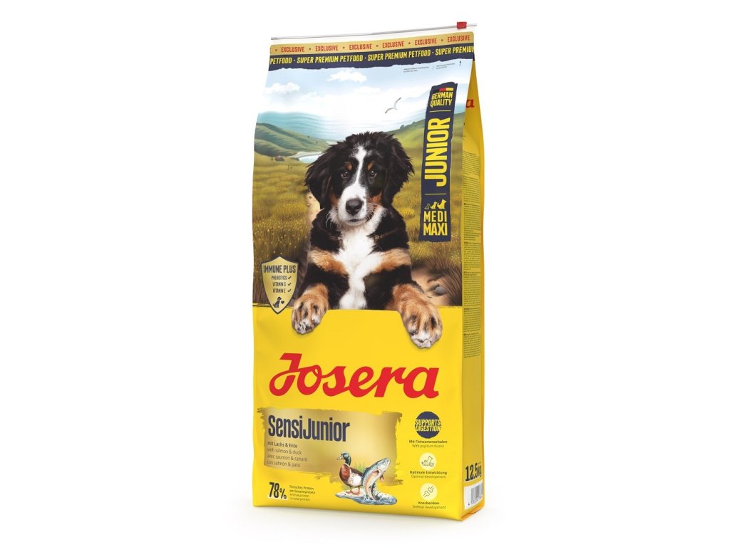 Superprémiové krmivo vysoce stravitelné vhodné pro odchov aktivních a temperamentních plemen. Je velmi vhodné taktéž pro štěňata s citlivým trávením. Obsahuje dietní vlákninu podporující trávení. Bez obilovin, sóji a kukuřice. Plnohodnotné nasycené mastné kyseliny z lososa podporují vývin mozku, L-Carnitin a vysoce kvalitní proteiny podporují růst a vývoj atletické stavby těla. Složení: rýže, drůbeží protein, drůbeží tuk, sušený kachní protein 4,0%, sušený lososvový protein 4,0%, bramborový protein, drůbeží protein (hydrolizovaný), sušené řepné řízky, celulóza, sušený svatojánský chléb, minerální látky, buněčné stěny kvasinek 0,50%, sušený kořen čekanky (přirozený zdroj inulinu), Psyllium 0,10%, sušené maso novozélandských mušlí slávek zelenoústých (Perna canalliculus).Deklarované jakostní znaky: hrubý protein 30,0%, hrubý tuk 17,0%, hrubá vláknina 2,3%, hrubý popel 6,0%, vápník 1,20%, fosfor 0,9%, sodík 0,3%, Taurin 1.000mg. Doplňkové vyživovací látky na 1kg: Vitamín A 24.000 IE, Vitamín D3 1.800, Vitamín E 220mg, Vitamín B1 15mg, Vitamín B2 20mg, Vitamín B6 20mg, Vitamín B12 100mcg, kyselina pantothenová 50mg, niacinamid 90mg, kyselina listová 5mg, L-Carnitin 200mg, Taurin 1000mg, biotin 1000mcg, vitamín C 200mg, železo (sulfát železa, monohydrát) 220mg, zinek (chelát zinku glycin, hydrát) 180mg, mangan 20mg, měď (chelát měďnatý glycin, hydrát) 18mg, jód (jodičnan vápníku) 2,2mg, selen 0,3mg. Metabolizovaná energie*: MJ/kg 16,50Metabolizovaná energie*: kcal/kg 3950Dbejte vždy na dostatek čerstvé pitné vody.* Národní výzkumný ústav (NRC 2006)* Technologické doplňkové látky: Antioxidanty: na bázi přírodního tocopherolu.Doplňkové parametry