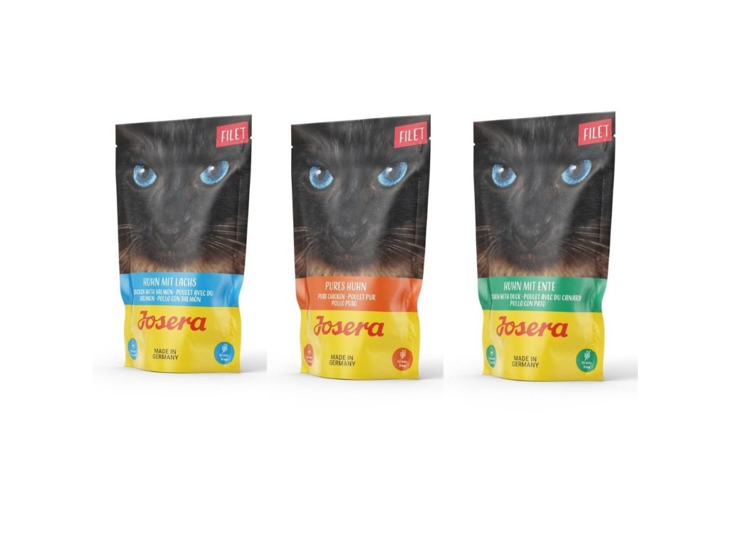 Mokré krmivo pro kočky je dostupné ve třech lahodných příchutích, zkrátka vítaná obměna kočičího jídelníčku. Krmivo pro kočky je tvořeno delikatesními kousky a vyznačuje se vysokým podílem masa. Vyvážená receptura a optimální pH přispívá k domu, aby se v moči netvořili kameny. Navíc neobsahuje obiloviny, proto je správnou volbou i pro kočky trpící alergiemi nebo potravinovými intolerancemi. Krmivo bylo vyrobeno v Německu a můžete jej kočce podávat každý den.Balení obsahuje kapsičky 2x kuře s lososem, 2x čisté kuře, 2x kachní a kuřecí příchuť.Složení s kuřecím masem a lososem: kuřecí plátek 40%, kuřecí vývar 39,0%, losos 10,0%, kuřecí játra, kuřecí tuk, minerály.Deklarované jakostní znaky: proteiny 11,8%, tuk 5,7%, hrubá vláknina 0,4%, hrubý popel 2,2%, vlhkost 79,0%.Nutriční doplňkové látky v 1kg: 20mg Vitamín E, 1500mg Taurin, 25mg Zinek (síran zinečnatý, Monohydrát), 1,40mg Mangan (síran manganatý, Monohydrát), 1,00mg Měď (síran měďnatý, Monohydrát), 0,75mg Jód (Jodičnan vápenatý).--------------------------------------------------------------------------------------------------------------------------------Složení čisté kuře: kuřecí plátek 40%, kuřecí vývar 39,0%, kuře (obsahuje srdce a játra), kuřecí tuk, minerály.Deklarované jakostní znaky: proteiny 11,8%, tuk 5,4%, hrubá vláknina 0,4%, hrubý popel 2,0%, vlhkost 79,0%.Nutriční doplňkové látky v 1kg: 200m.j.Vitamín D3, 20mg Vitamín E, 1500mg Taurin, 25mg Zinek (síran zinečnatý, Monohydrát), 1,40mg Mangan (síran manganatý, Monohydrát), 1,00mg Měď (síran měďnatý, Monohydrát), 0,75mg Jód (Jodičnan vápenatý).-------------------------------------------------------------------------------------------------------------------------------Složení kuřecí s kachním: kuřecí plátek 40%, kuřecí vývar 39,0%, kachní srdce 10,0%, kuřecí tuk, kuřecí játra, minerály.Deklarované jakostní znaky: proteiny 11,9%, tuk 5,6%, hrubá vláknina 0,4%, hrubý popel 2,0%, vlhkost 79,0%.Nutriční doplňkové látky v 1kg: 200m.j.Vitamín D3, 20mg Vitamín E, 1500mg Taurin, 25mg Zinek (síran zinečnatý, Monohydrát), 1,40mg Mangan (síran manganatý, Monohydrát), 1,00mg Měď (síran měďnatý, Monohydrát), 0,75mg Jód (Jodičnan vápenatý).Doplňkové parametry