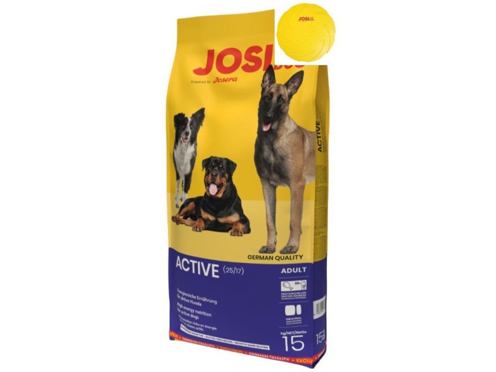 Krmivo s vysokým obsahem energie pro aktivní psy. JosiDog Active v krátkém přehledu:- 80 % živočišných proteinů a 20 % rostlinných bílkovin- bezlepková receptura- vysoký obsah antioxidantů pomáhá chránit buňky před volnými radikály- taurin podporuje kardiovaskulární systém, zrak a plodnost- prebiotický inulin posiluje střevní flóru- glykosaminoglykany (GAG) se přirozeně nacházejí v kloubní chrupavce psa- bez geneticky modifikovaných surovin, barviv, dochucovadel a konzervantůSložení: sušený drůbeží protein, celozrnná kukuřice, rýže, drůbeží tuk, řepné řízky, hydrolyzovaný drůbeží protein, minerální látky, sušený kořen čekanky (přirozený zdroj inulinu), hydrolyzovaná rostlinná bílkovina, sušené maso novozélandských pyskatých zelených mušlí (Perna canaliculus).Analytické složky: hrubé bílkoviny 25 %, hrubý tuky 17 %, hrubá vláknina 2 %, hrubý popel 6,2 %, vápník 1,5 %, fosfor 1 %, sodík 0,4 %, Taurin 1.000mg.Doplňkové látky v 1 kg: vitamín A 16 000 m. j./kg, vitamin D3 1200 m. j./kg, vitamín E 130 mg/kg, biotin 650 mcg/kg, železo (síran železnatý, monohydrát) 175 mg/kg, zinek (chelát zinku a glycinu, hydrát) 150 mg/kg, mangan (Mangan-(II)-oxid) 15 mg/kg, měď (chelát mědi a glycinu, hydrát) 18 mg/kg, jód (jodičnan vápenatý) 2,0 mg/kg, selen (seleničitan sodný) 0,25 mg/kg.Metabolická energie 3947 kcal/kg Technologické doplňkové látky: Antioxidanty: tokoferolový extrakt přirozeného původu. Dbejte vždy na dostatek čerstvé pitné vody. Doporučená dávkovací tabulka - denní dávka v gramechVáha psa 5kg 10kg 20kg 30kg 40kg 60kg 80kg 50-90g 100-150g 160-270g 230-360g 270-480g 380-620g 450-770gDoplňkové parametry