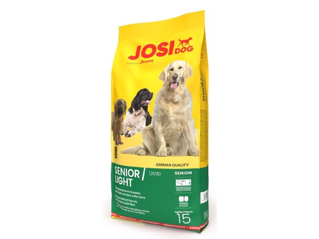 Krmivo s nízkým obsahem tuku pro méně aktivní dospělé psy. Vhodné také jako krmivo pro starší psy. Chutná, lehká, vyvážená a dobře snášená receptura s 66% živočišných bílkovin v celkovém množství bílkovin. Obsahuje důležité účinné látky pro podporu kondice a dobré životní pohody. Bez přidané sóji, cukru, mléčných výrobků, přidaných umělých barviv, aromat a konzervačních látek. JosiDog Senior / Light je určen pro naše starší čtyřnohé přátele. Krmivo pro psí seniory je dokonale přizpůsobeno každodennímu životu starších psů a má mírný obsah bílkovin a minerálních látek, které jsou šetrné k orgánům. Díky své nízkotučné, superchutné receptuře je toto krmivo ideální také jako prevence obezity - pro všechny dospělé, méně aktivní čtyřnohé přátele všech věkových kategorií. Charakteristika produktu ve zkratce:- komplexní krmivo pro méně aktivní, starší psy nebo psy s nadváhou- snížený obsah energie: zabraňuje obezitě a redukuje hmotnost- vysoce kvalitní přísady, přednostně z daného regionu- 66% živočišných proteinů: lehce stravitelné drůbeží maso, které pes dobře využije- s prebioticky působícím inulinem: podporuje pozitivní bakterie ve střevě a potírá ty patologické, přispívá ke zdravému prostředí střevní mikroflóry- bez pšenice a sóji: Z lehce stravitelných zdrojů sacharidů pro potřebnou energii- vysoký obsah antioxidantů:chrání buňky před volnými radikály- Biotin: Pro zdravou kůži a srst, jakož i na podporu metabolismu bílkovin, tuků a sacharidů- bohaté na vitamíny a minerály- bez GMO: Bez použití geneticky modifikovaných surovin- bez barviv, aromat a konzervačních látek, pšenice a sóji- vyrobeno v Německu Složení: celozrnná kukuřice, ječmen, sušené drůbeží bílkoviny, rýže, řepná vláknina, masokostní moučka, drůbeží tuk, hydrolyzované drůbeží bílkoviny, hydrolyzované živočišné bílkoviny, minerální látky. Analytické složky: hrubé bílkoviny 21%, hrubé tuky 8%, hrubá vláknina 3,3%, hrubý popel 6,1%, vápník 1,30%, fosfor 0,85%, sodík 0,45%, Taurin 1.000mg.Doplňkové látky: vitamín A 17.300 IE/kg, vitamín D3 1.300 IE/kg, vitamín E 150 mg/kg, vitamín B1 10.0 mg/kg, vitamín B2 15.0 mcg/kg, vitamín B6 15.0 mg/kg, vitamín B12 70.0 mg/kg, kyselina pantothenová 35 mg/kg, niacin 60 mg/kg, kyselina listová 4.00mg/kg, biotin 650 mcg/kg, železo [železo (II) sulfát, monohydrát] 200 mg/kg, zinek [glycin zinek chelát hydrát] 160 mg/kg, mangan [mangan-(II)-oxid] 16 mg/kg, měď [Glycine měďnatý hydrát] 20 mg/kg, jod [jodičnan vápenatý] 2,0 mg/kg, selen [seleničitan sodný] 0,25 mg/kg. Metabolizovatelná energie: 14.3 MJ Metabolizovatelná energie: 3.429kcalTechnologické přísady: Extrakty přírodního původu obsahující tokoferolDbejte vždy na dostatek čerstvé pitné vody. Doporučená dávkovací tabulka - denní dávka v gramech Váha psa 5kg 10kg 20kg 30kg 40kg 60kg 80kg 70-100g 110-170g 160-270g 180-300g 300-500g 400-660g 510-810gDoplňkové parametry