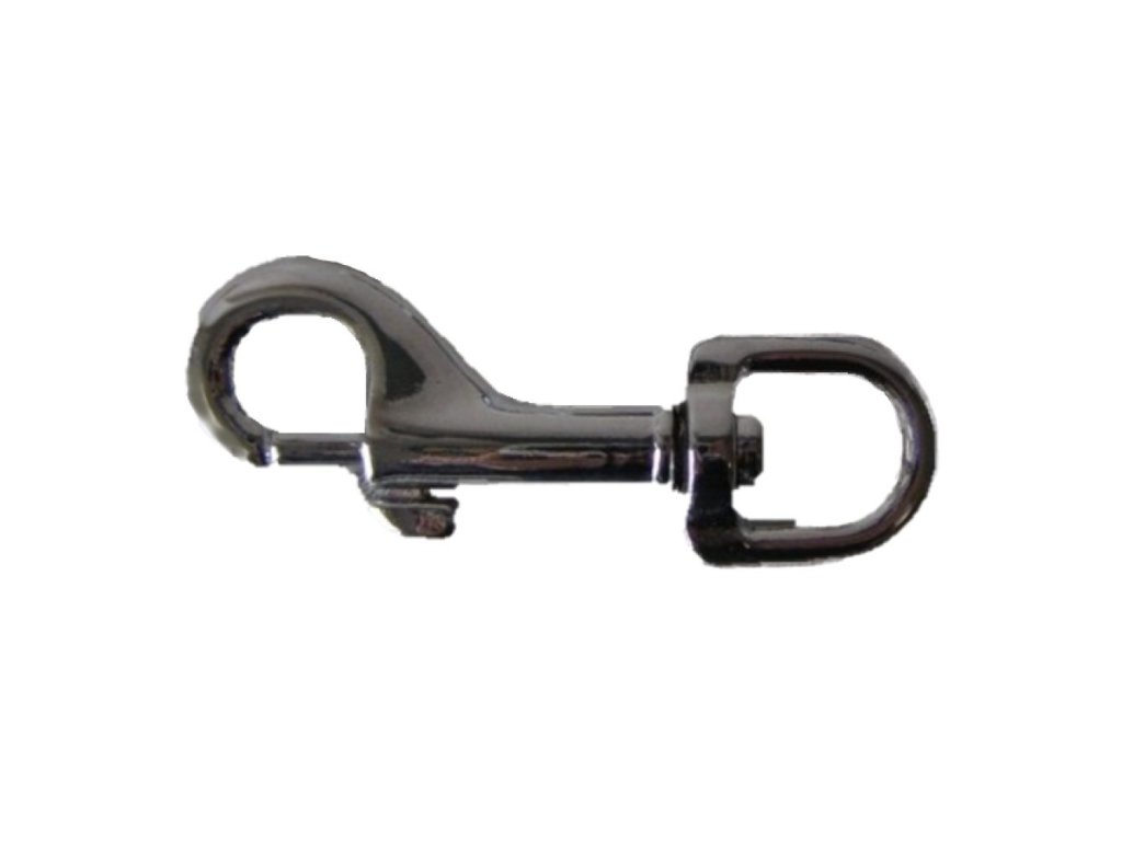 Klasická háková karabina s otočně uloženým půlkulatým okem pro připevnění k vodítku.Rozměr: 7,5cm