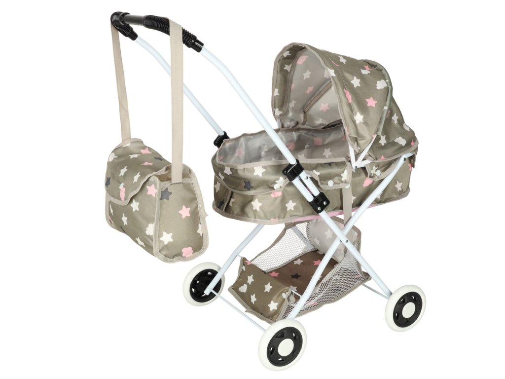 Tradiční kočárek umožňuje dítěti panenku položit, přikrýt ji dekou a pečovat o ni jako o skutečné miminko. Kočárek pojme panenku o délce až 45 cm a je vhodný na procházky po domě nebo na dvoře. Ve spodní části je navíc praktická polička na nejnutnější drobnosti a součástí je také praktická taška přes rameno. Jedná se o ideální volbu pro děti, které sní o svém prvním kočárku - pohodlný, prostorný a multifunkční.