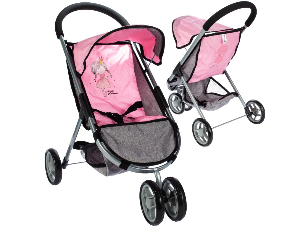 Kočárek pro panenky Little Princess PinkGrey. Rozměry kočárku: výška 63 cm x délka 60 cm x šířka 29 cm. Průměr kol: 13 cm. Rozteč kol: 28 cm. Rozměry košíku: výška 12 cm x délka 22 cm x šířka 23 cm. Rozměry sedátka: délka 52 cm x šířka 25 cm.Doplňkové parametry