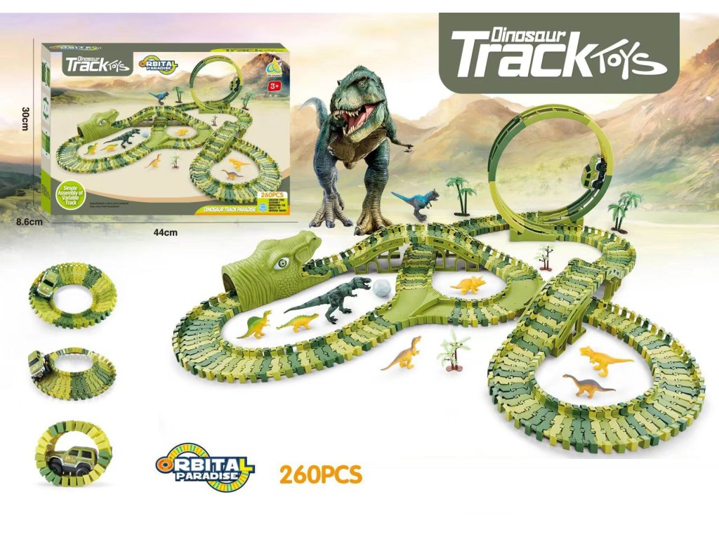 Kolejová dráha + auto Dinozaur 260 ks na baterii
