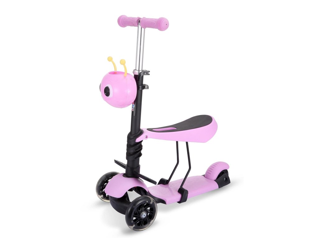 Koloběžka beruška růžová. Materiál: Nylon (PA), PP, hliník, ocel, PU. Střední trubka: ocel. T-tyč: hliník. Rukojeť: TPR. Přední kolečko: 120*28 mm PU s osvětlením. Zadní kolečko: 98*48 mm PVC. Ložisko: ABEC-7.Doplňkové parametry