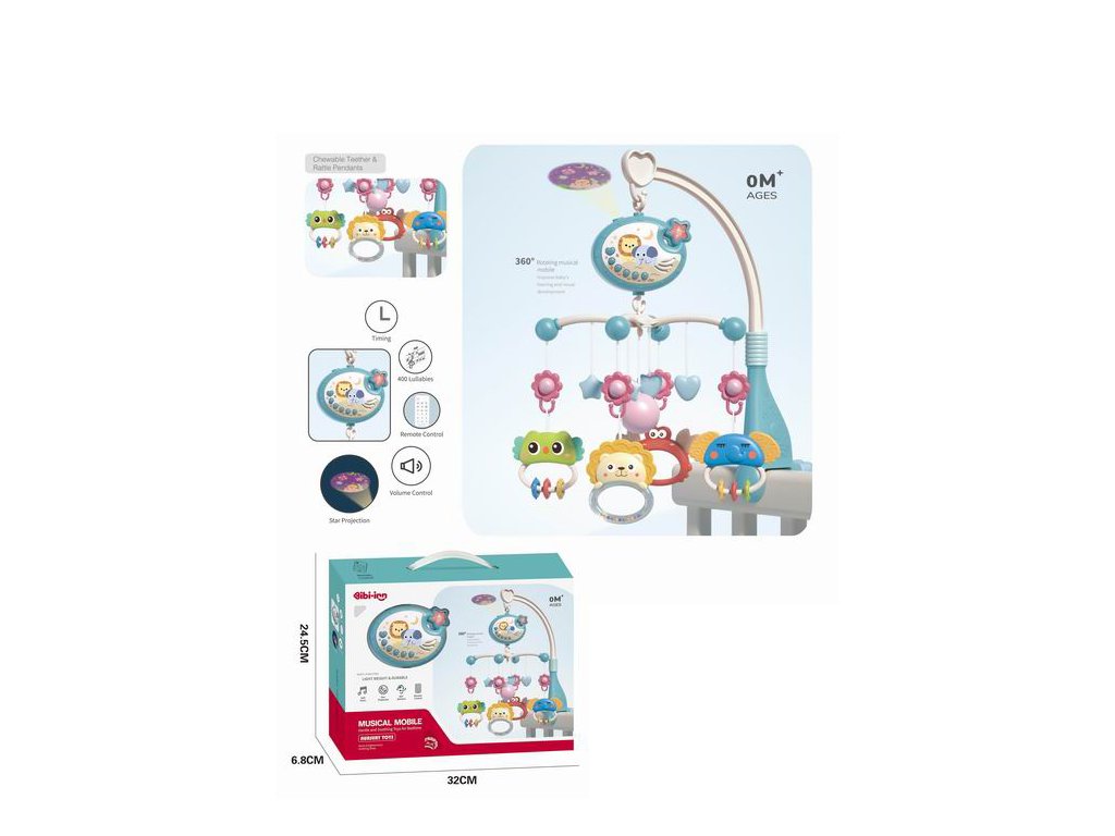 Kolotoč nad postýlku se zvířátky modrý. Rozměry balení: 32 x 24,5 x 7 cm. Rozměry složeného kolotoče: celková výška: 43 cm, celková šířka: 38 cm, rozpětí ramen kolotoče: 25 cm. Rozměry hrací skříňky: 9,5 x 11,5 x 4,5 cm. Napájení: 3xAAA (nejsou součástí). Světlo, zvuk.Doplňkové parametry