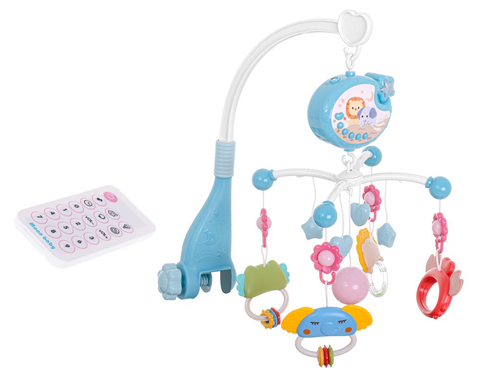 Kolotoč s hvězdným designem ukolébavky modrý + dálkové ovládání