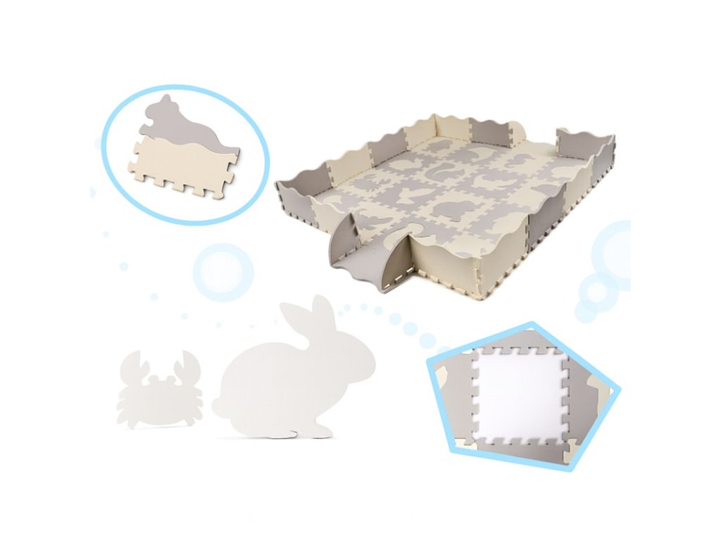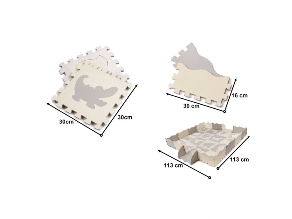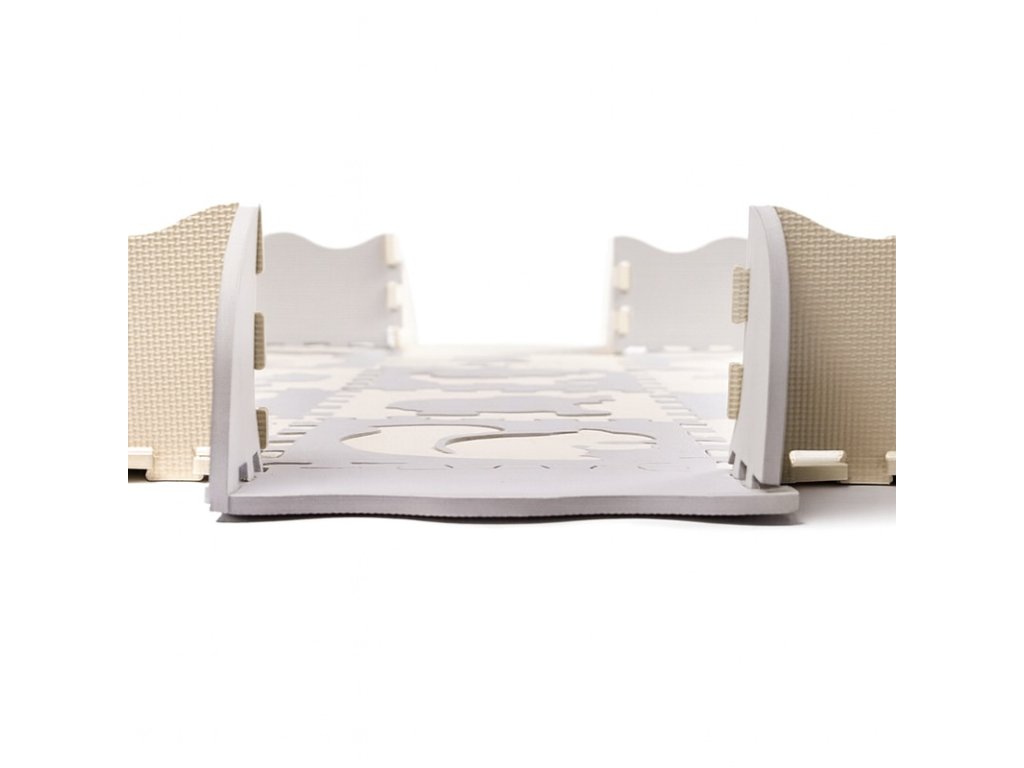 Pěnová dětská podložka puzzle s ohrádkou – 144 × 144 cm, 36 dílů, šedá/béžová
