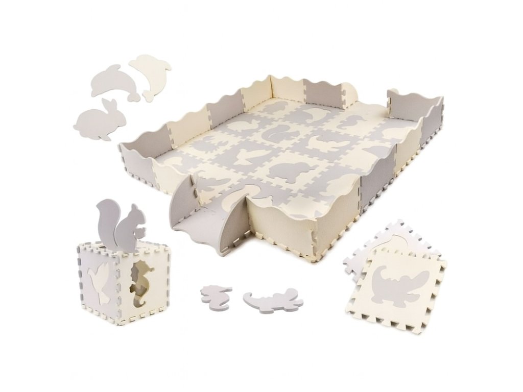 Kontrastní béžové pěnové puzzle se zvířátky, 36 dílků