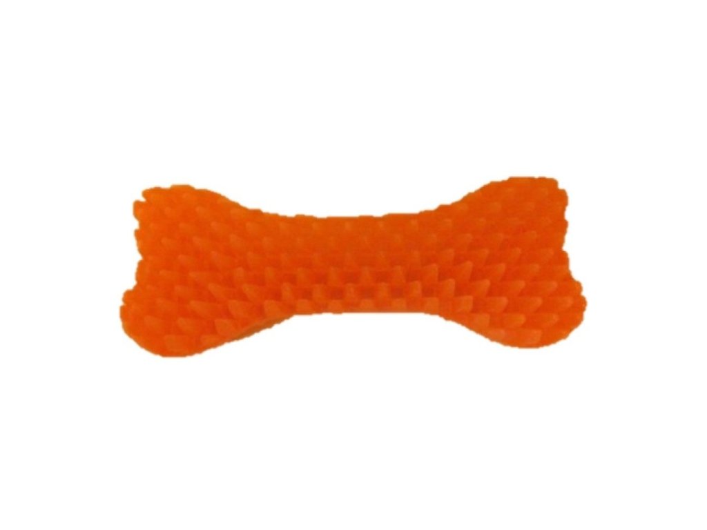 Hračku nedoporučujeme pro silné kousače (pitbull, rotvajler), kteří budou hračku hned likvidovat silným stiskem svých čelistí. Je určeno pro psy, kteří mají rádi hru a nemají tendenci hračku co nejdříve zničit, rozkousat. Díky zapracovanému vzoru na povrchu a speciálnímu tvaru může pes hračku snadno uchopit a nosit. Ohebný gumový materiál je šetrný k zubům psa.Upozornění: jako u každého jiného produktu byste měli dohlédnout na hru Vašeho zvířete s touto hračkou. Prosíme, abyste pravidelně hračku kontrolovali, zda není poškozená, a v případě odhaleného defektu ji vyměnili. V opačném případě by nemohlo být vyloučeno zranění zvířete.Rozměr: 14cmBarva: modrá, oranžová, červená, zelenáZasíláme barvu dle aktuální skladové zásoby. Pokud však požadujete výhradně jednu barvu, uveďte to prosím v poli "poznámka".Doplňkové parametry
