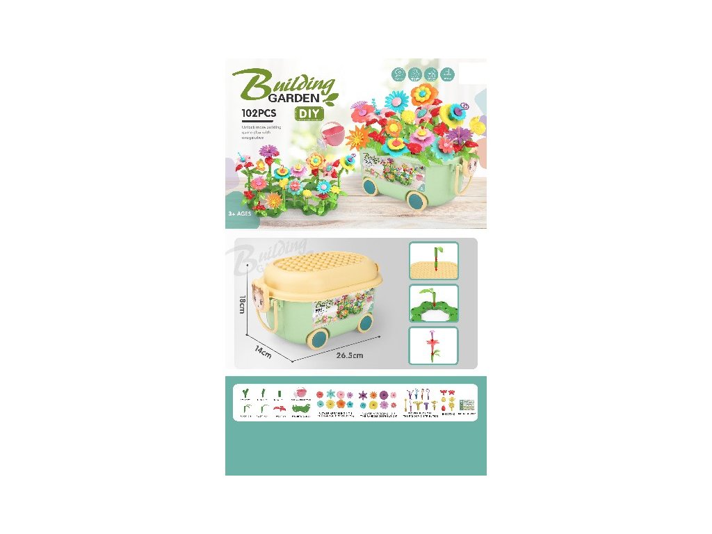 Kostky květiny 102 ks DIY vozík s konvičkouDoplňkové parametry