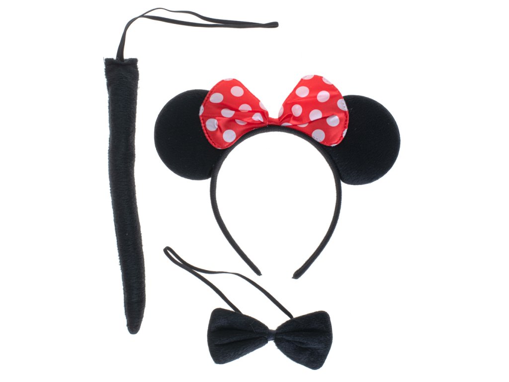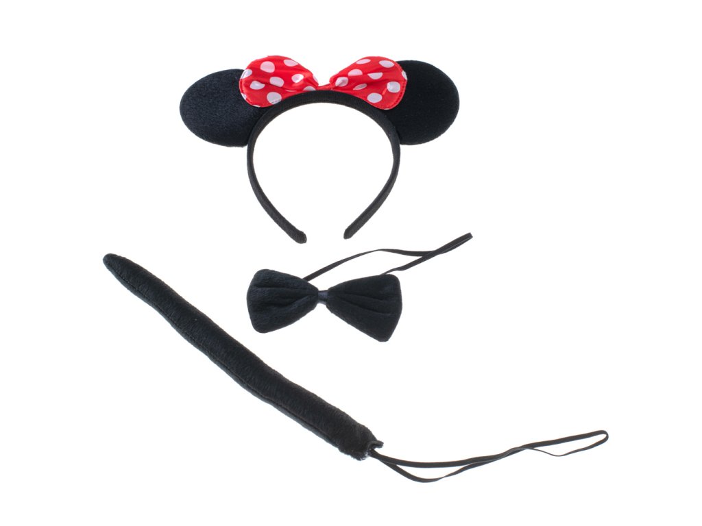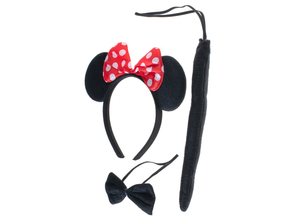 Sada obsahuje čelenku s ušima a červenou mašli s bílými puntíky, ale také černého motýlka a černý ocásek - vaše dítě se bude moci převléknout za pohádkovou myšku, kterou všichni dobře znají! Chvíle nostalgie je zaručena i pro vás.