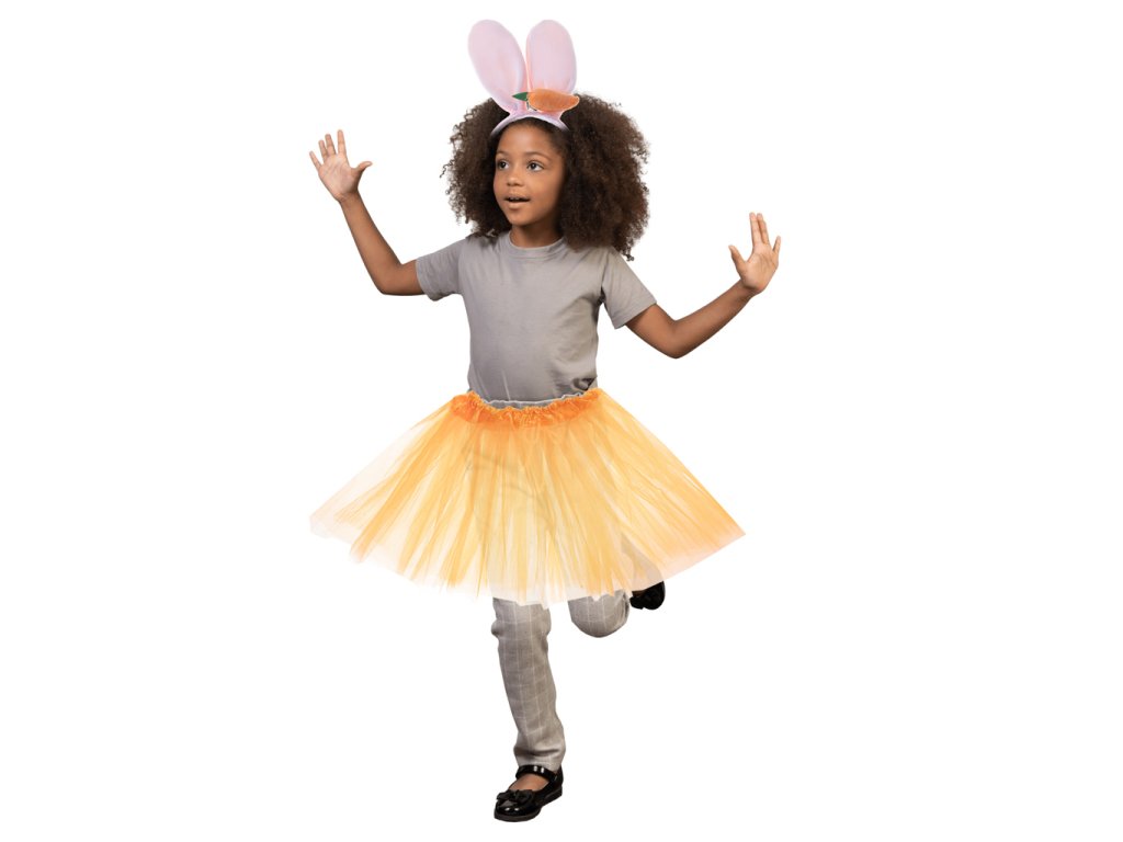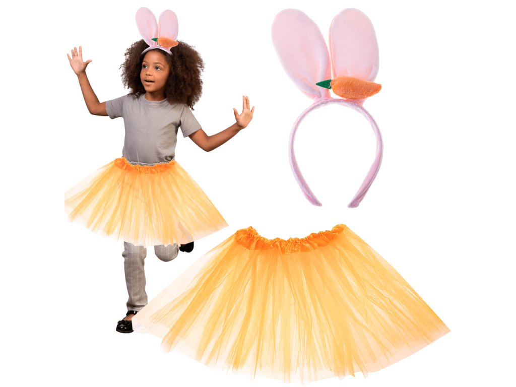 Sada obsahuje čelenku s měkkýma ušima a chutnou mrkví, ale také oranžovou tylovou sukni - vaše dítě se bude moci převléknout za zvířátko, které všichni tak dobře znají!
