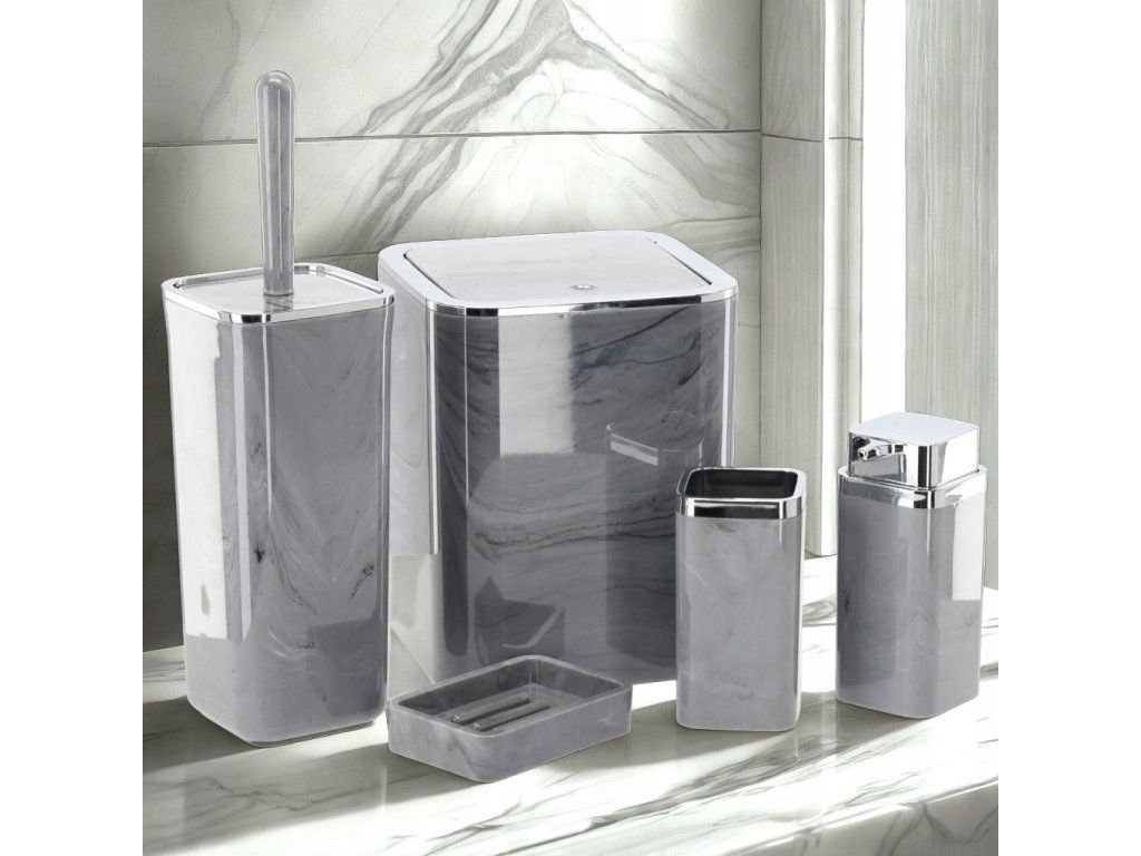 Koupelnová sada čtvercová 5 ks mramorová šedá *5140
