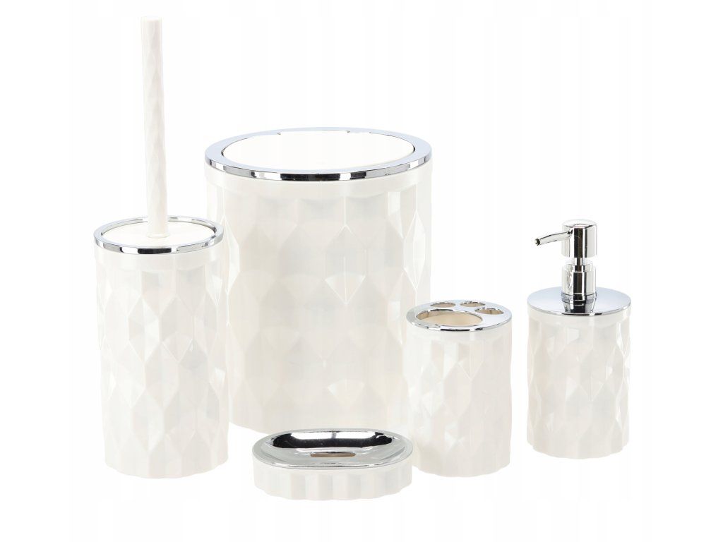 Koupelnová sada 5dílná kulatá v bílé barvě, vyrobena z plastu.