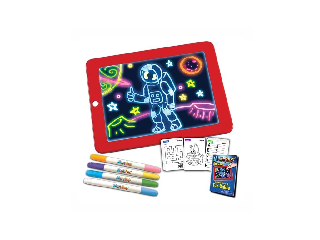 Tato dětská tabule záři pomocí LED světel. Děti s ní mohou popustit uzdu fantazii a nakreslit si vše, co jim napadne - od svítících vesmírných příšer až po oslnivý podmořský svět. Jedním tahem obrazovku setřou a mohou kreslit něco jiného.