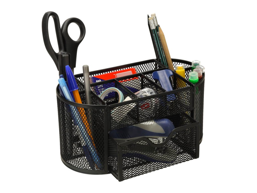 Minimalistický design - Díky černé kovové síťovině je tento stolní organizér vhodný do studentského pokoje i do kanceláře.