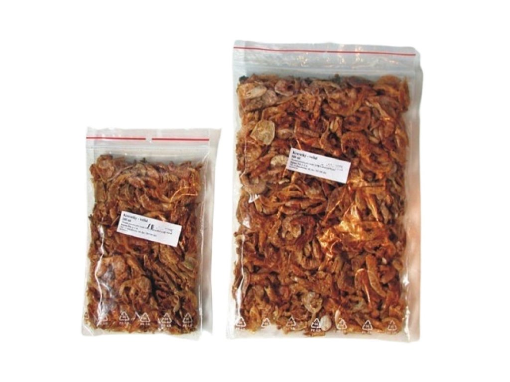 Přírodní krmivo, sušené krevety pro vodní želvy, akvarijní ryby a terarijní živočichy. Šetrným způsobem sušení korýši (krevety) jsou pro terarijní zvířata oblíbeným a přirozených zdrojem potřebných živin.Buďte první, kdo napíše příspěvek k této položce.