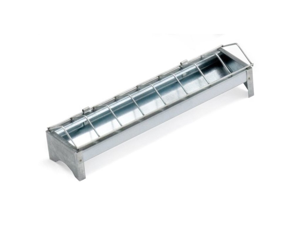Krmítko žlabové pro kuřata - pozink. Rozměry: výška krmítka 10cm, výška krmítka + mřížka 16cm, šířka 13,5m, délka cca 73-75cm.
