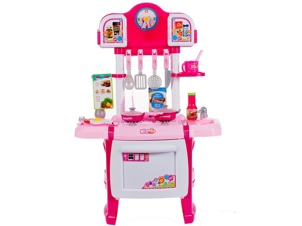 Kuchyňka s hodinami růžová. Součástí sady jsou:- vejce